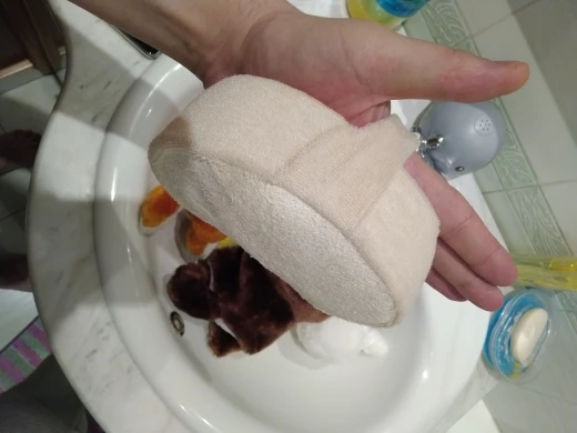 Меньше, чем ожидал. Рука еле пролазит. Одна сторона жёсткая, другая мягкая - губка как губка. Посмотрим, сколько проживёт