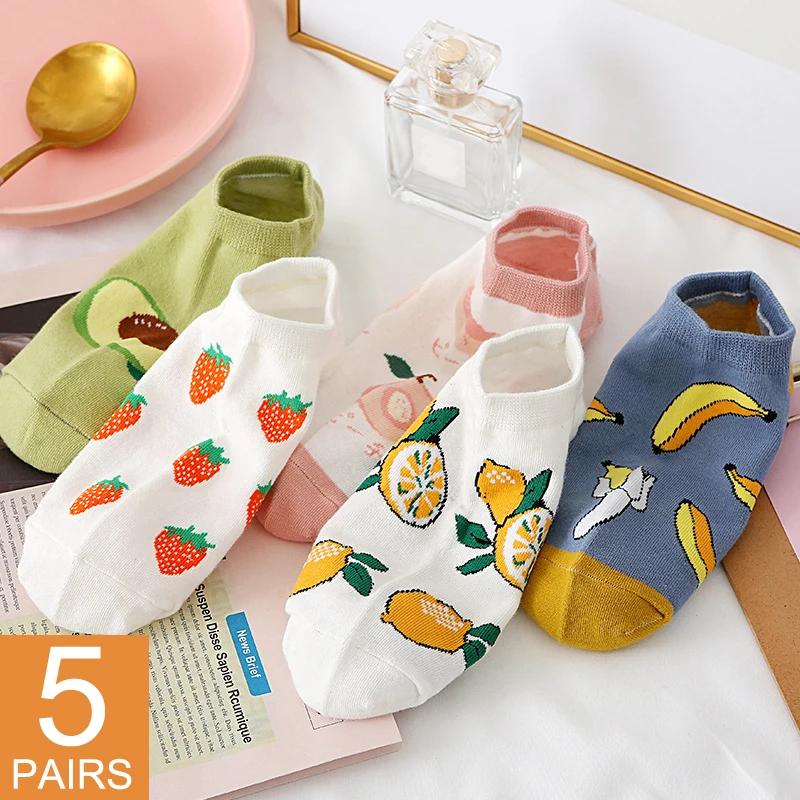 Носки женские короткие, хлопковые, с принтом в виде кота, сердца, 5 пар