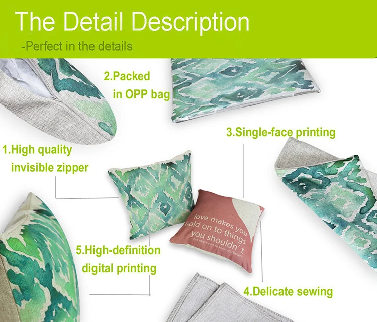 Описание: Чехол для подушки изготовлен из хлопчатобумажной ткани, с хорошей проницаемостью, чехол для подушки доступен по цене, долговечен и экономичен.Который выглядит более художественно и может предотвратить царапины. Ткань из хлопка и полиэстера также является своего рода мягким материалом,Которые подарят Вам комфортную жизнь.Кроме того, красивый узор выглядит более элегантно и превосходно. Спецификация: Наименование товара: Чехол для подушкиУпаковочный лист: 1/чехол для подушки из поликарбоната (только чехлы)Материал : Лен/полиэстерМатериал Цвет: Бежевый (не белый)Размер: 45 см x 45 см (18x18inch )Если вам нужно больше размеров, пожалуйста, свяжитесь с нами. Упаковка: 1 шт/ПВХ мешок.Сезон: Весна, лето, осень, зима