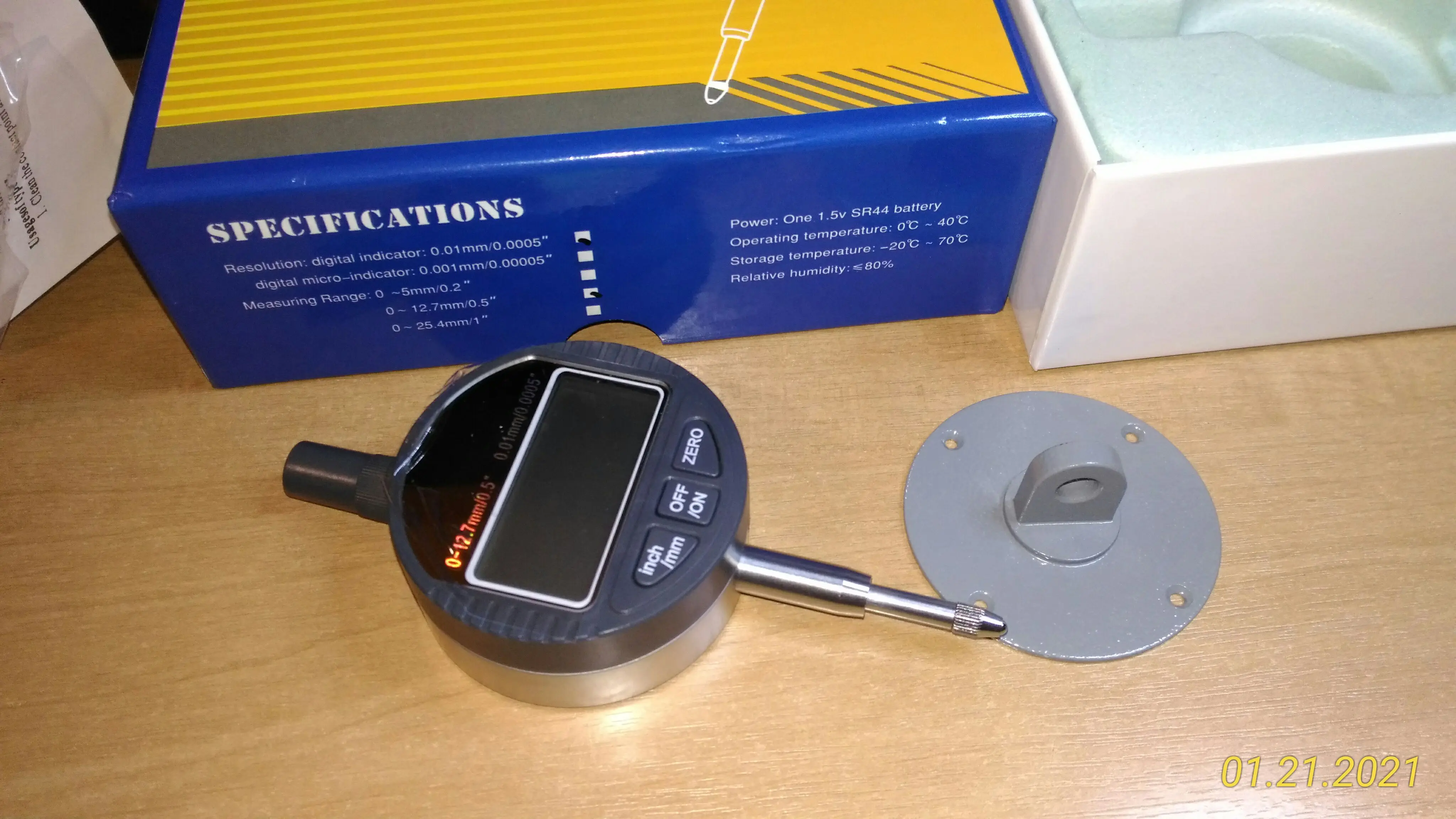 Индикатор соответствует описанию. Брал вариант с коробкой, неожиданным бонусом оказалась дополнительная задняя крышка с ушком крепления. Цифровой интерфейс рабочий, период выдачи данных примерно 120 мс. Готовый разъем не нашел, при изготовлении руководствовался статьей "Caliper Data Interface", автор JonMackey (пишу название и автора, т.к. не уверен, что в отзывах можно вставлять ссылки).
