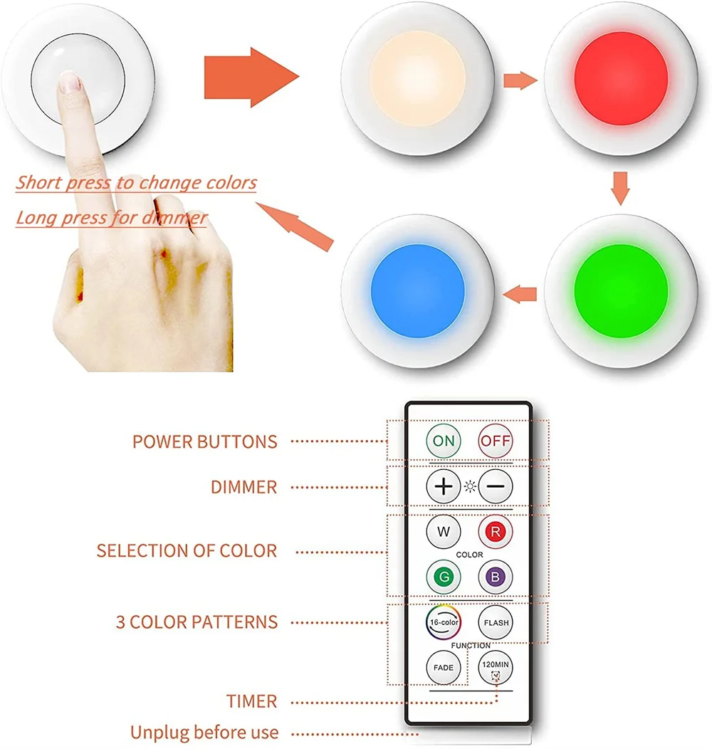 Светодиодный сенсорный светильник RGBW, 16 цветов