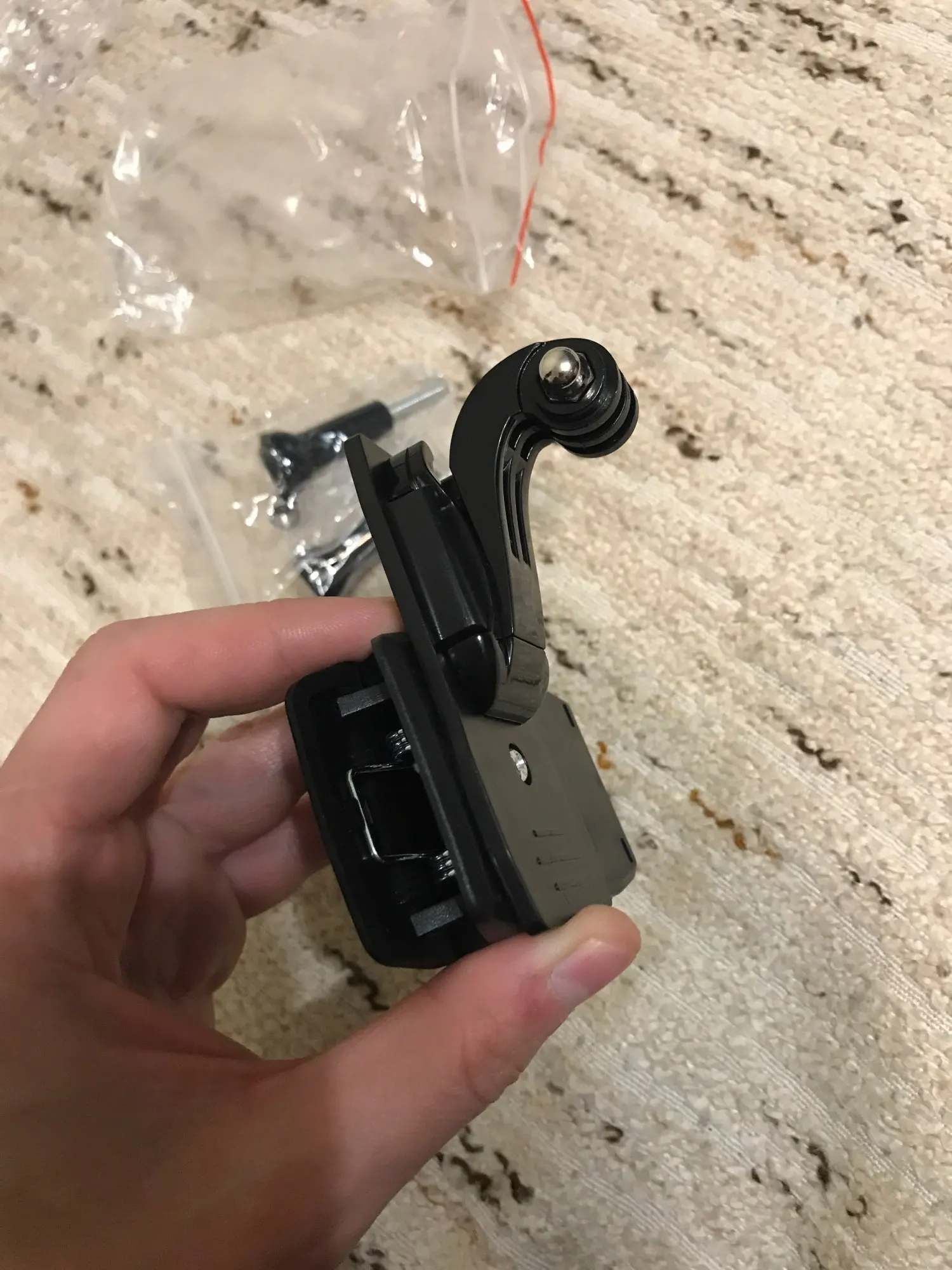 Работает, но Пластик выглядит не так хорошо, как официальный зажим GoPro. Но пока он работает и держит камеру на месте.