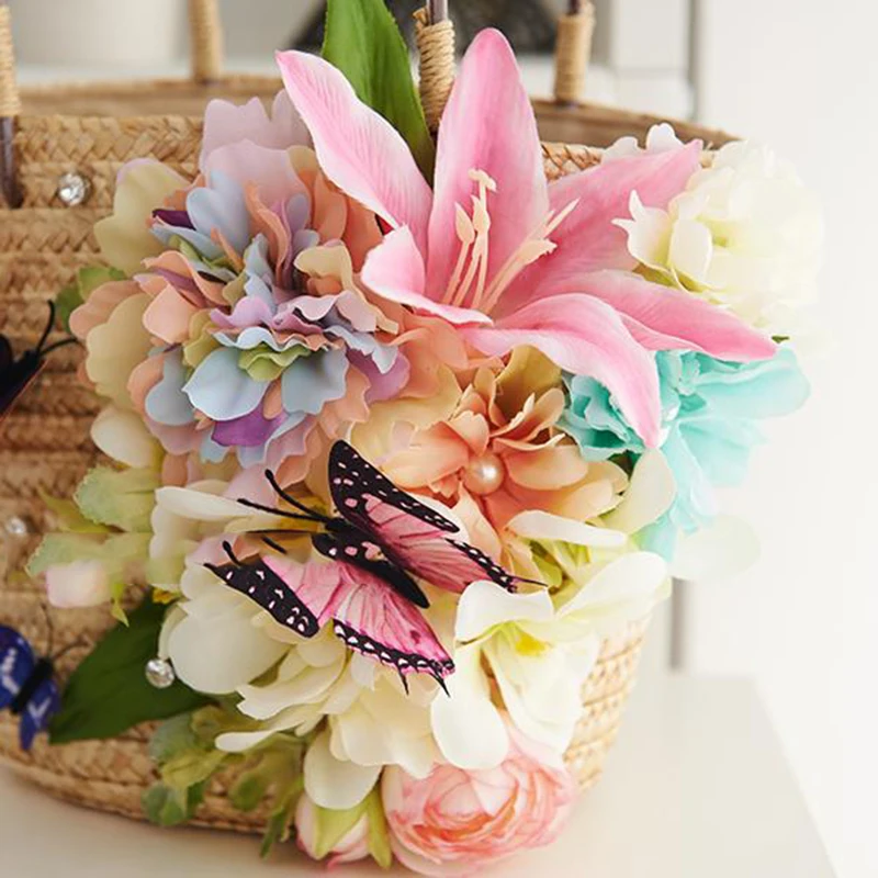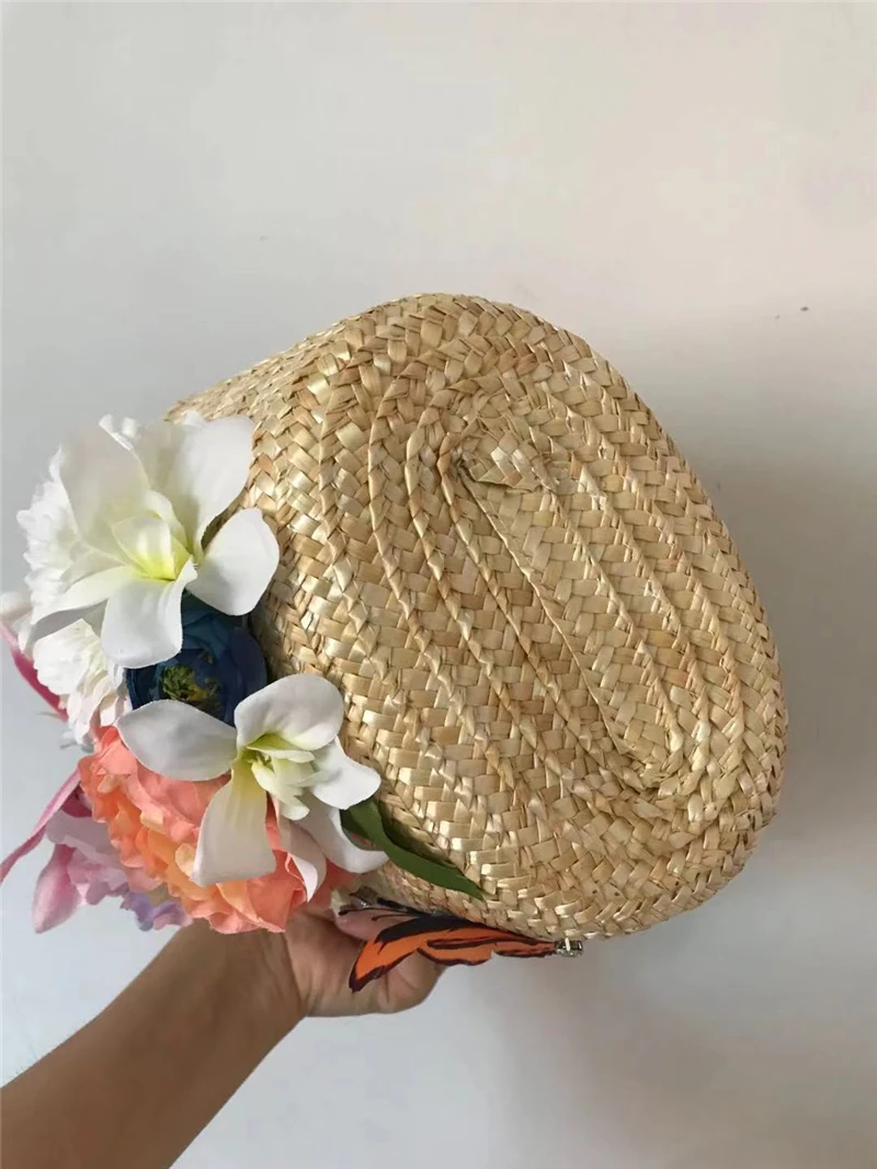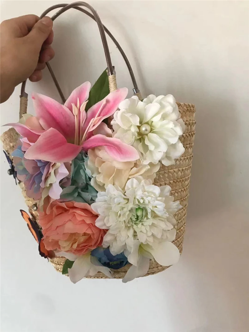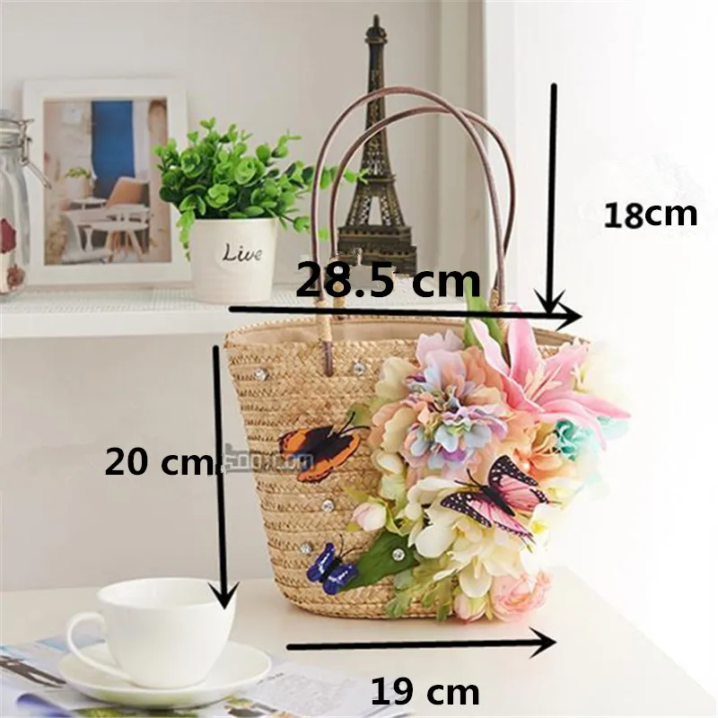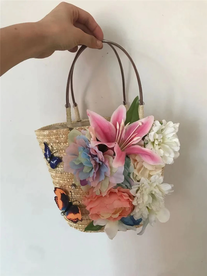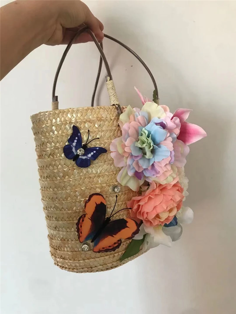 Соломенная Сумка ручной работы с цветами для женщин, летняя соломенная сумка для отдыха, сумки-тоут с бабочками, пляжные сумки, тканая сумка ручной работы, 2021