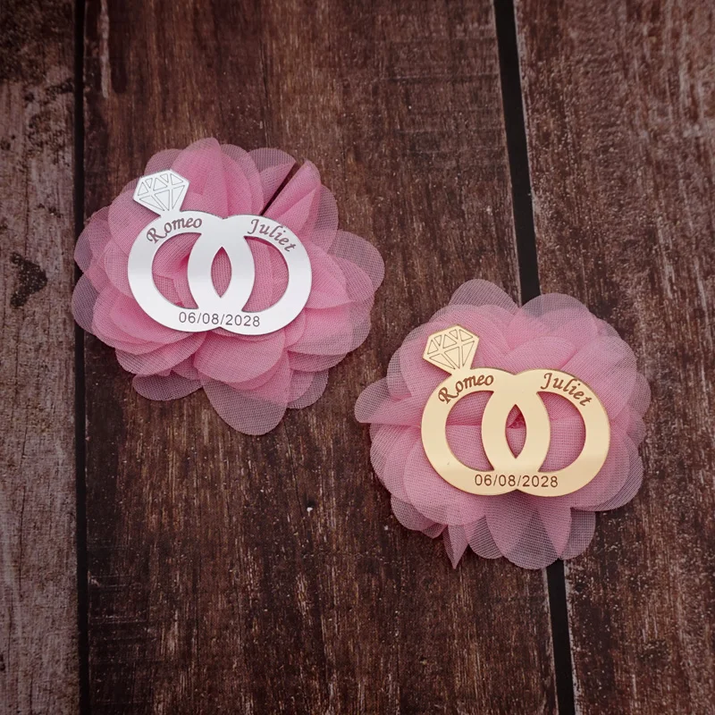 Двойные Кольца для жениха и невесты на заказ, Свадебный декор, акриловые зеркальные наклейки Praty персонализированный гость, подарок с цветком, 20 штук