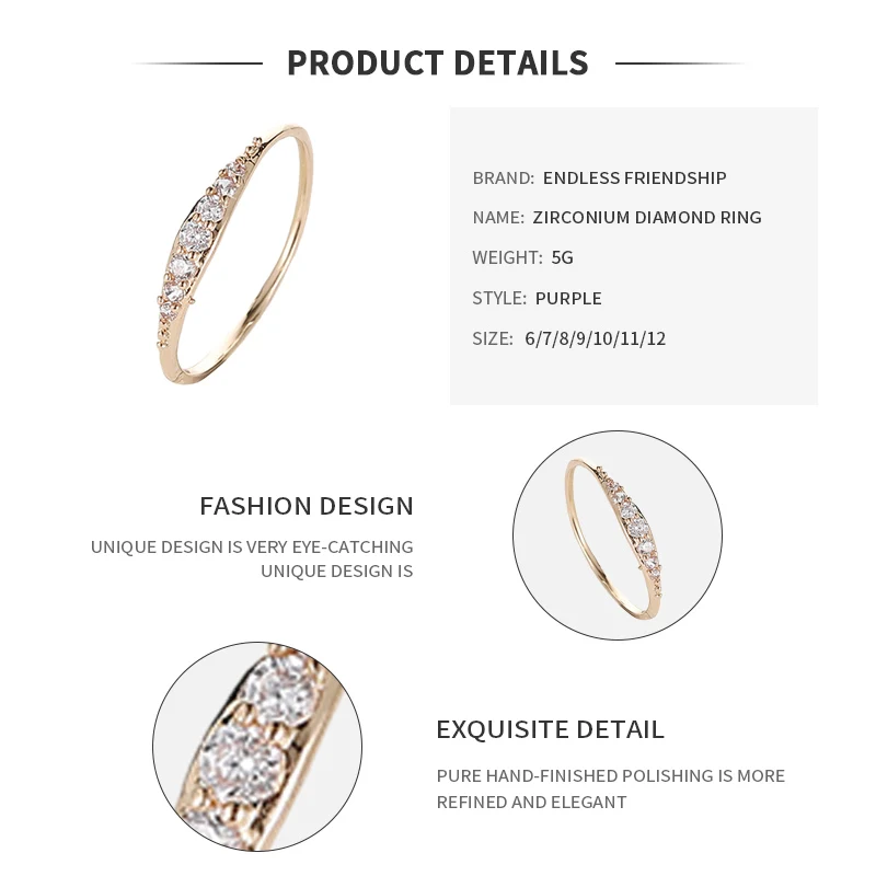 Новое модное парное кольцо, женское однорядное сверло, Золотое Ювелирное кольцо для женщин, ювелирные изделия для помолвки, подарки