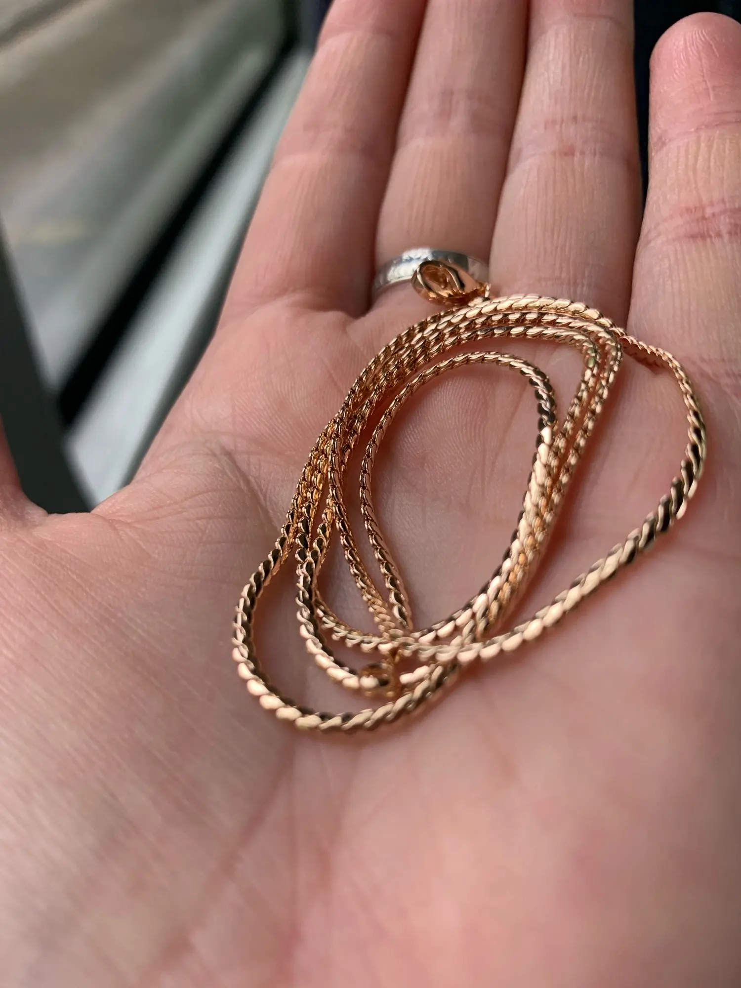 Очень красивая цепочка - «змейка»! Не слишком тонкая, и не грубо широкая. Заметная. Выглядит, аккуратно, как золотая. Такую и хотела. Замочек удобный, крепкий. Посылка долетела оч. быстро. Посмотрим, как будет в носке. Продавцу, - большой респект, 50 звезд, и подписка.