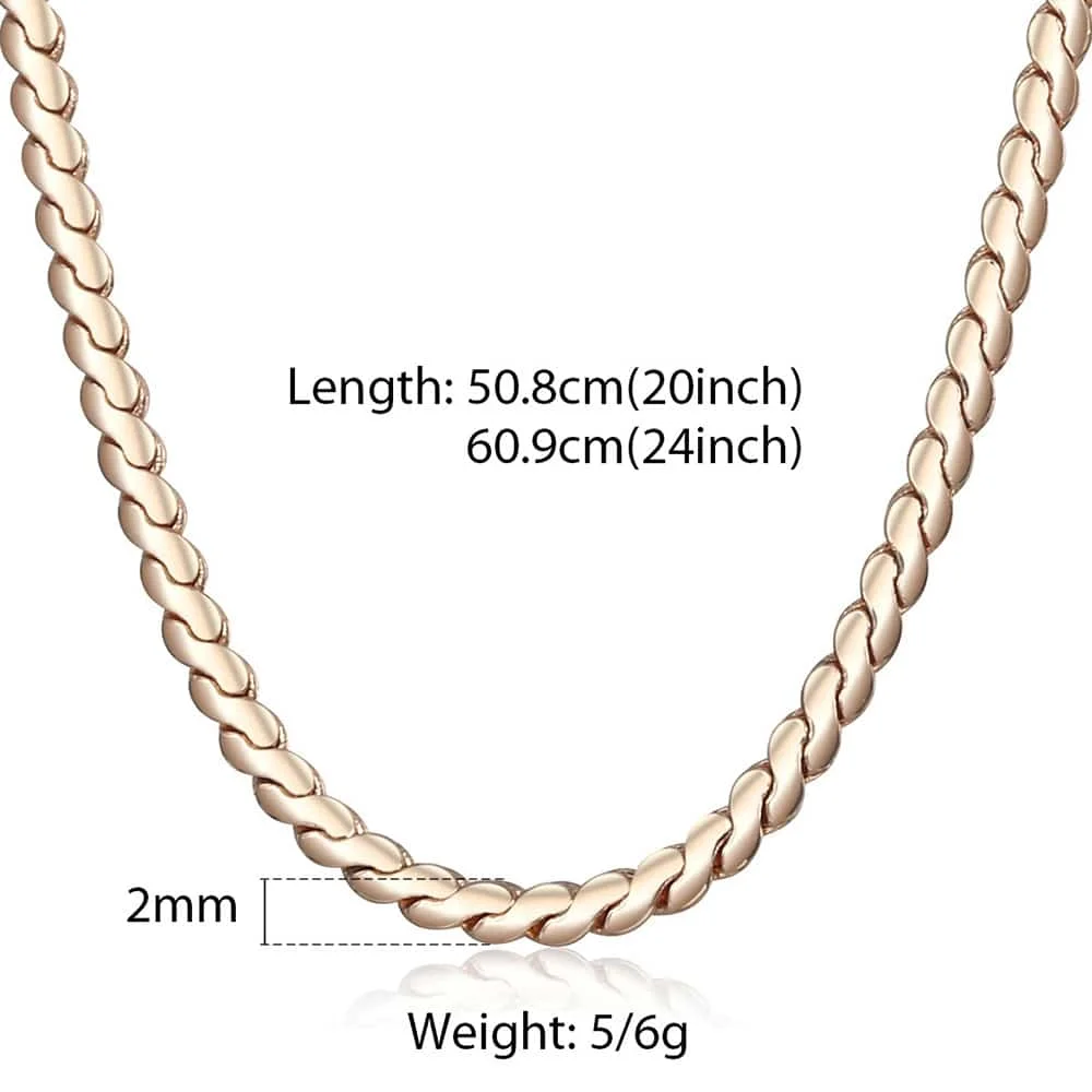 Цепочка Женская под змеиную кожу, 2 мм, тонкая, розовое золото 585 пробы, 20-24 дюйма, CN16
