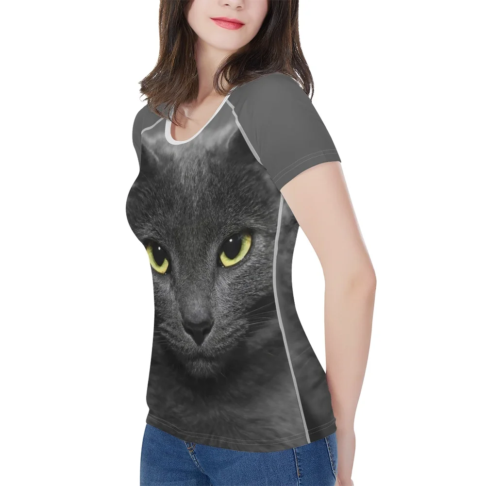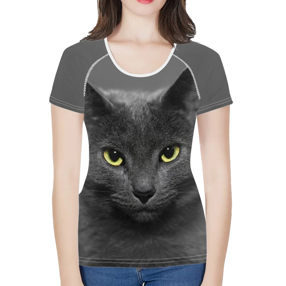 Футболка FORUDESIGNS в стиле Харадзюку, женские модные футболки, уличная одежда 2019, Повседневная дышащая футболка с 3D принтом Серого Кота, топ с коротким рукавом