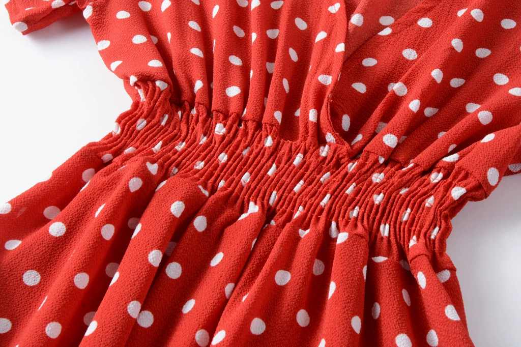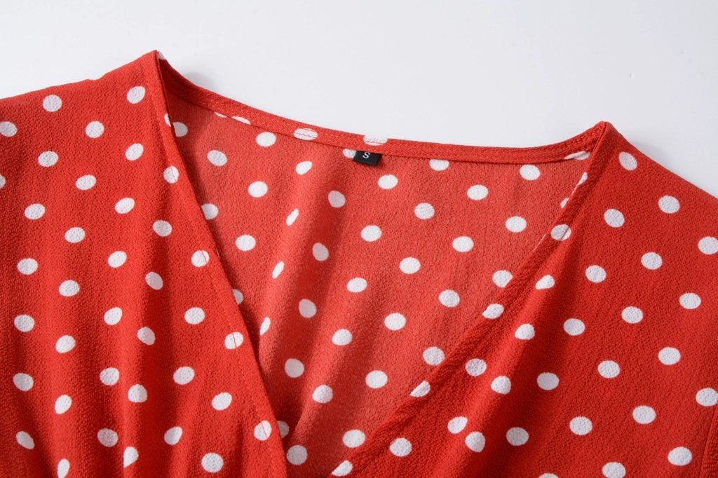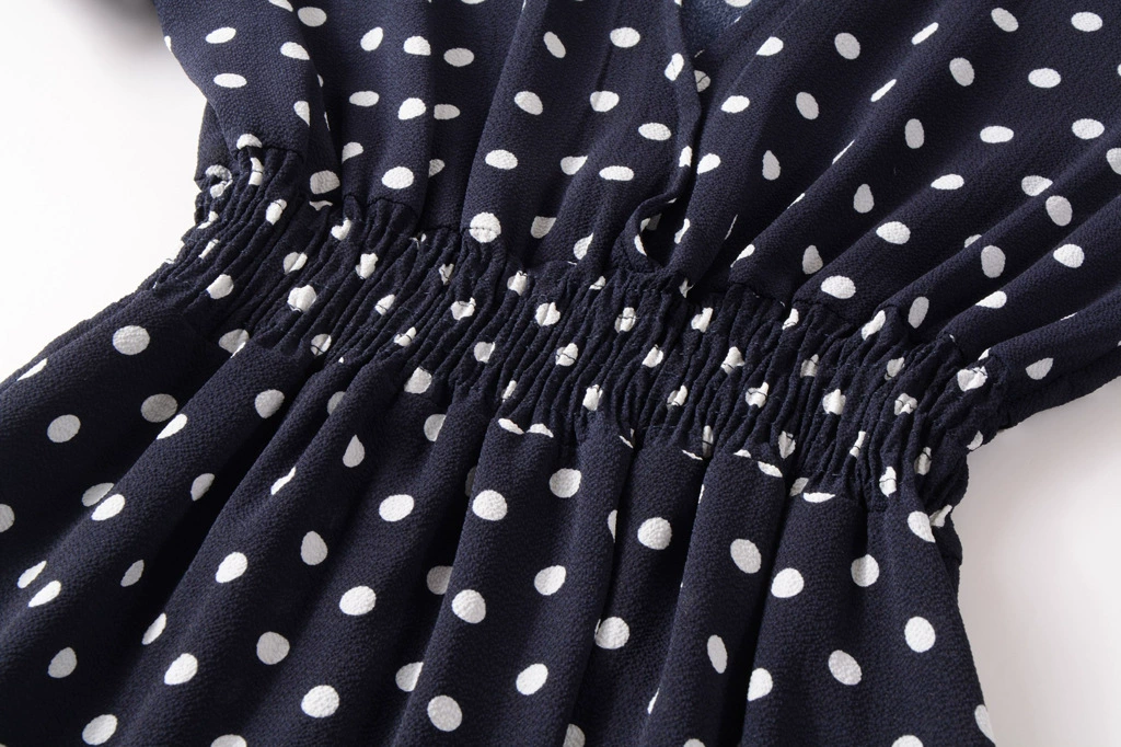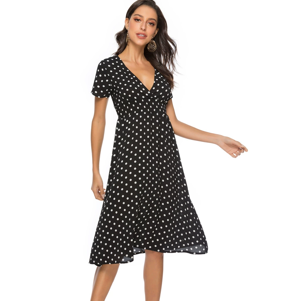 Шифоновые пляжные платья 2022, женское модное сексуальное платье миди в горошек с V-образным вырезом, летнее женское Повседневное платье-трапеция в стиле бохо с коротким рукавом, платья