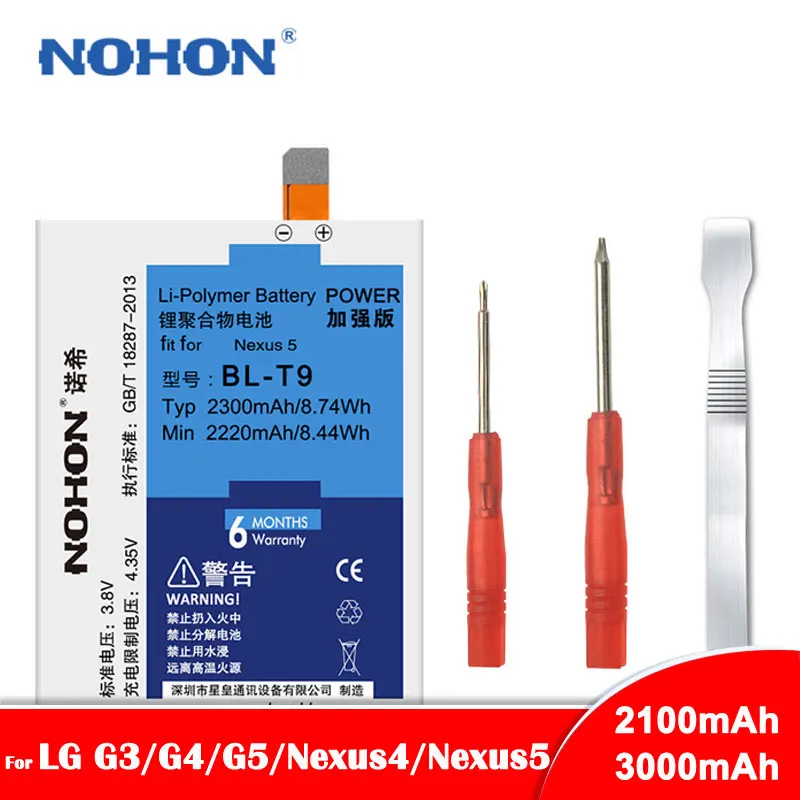 Оригинальный NOHON Батарея для LG G4 G3 G5 V10 Google Nexus 5 BL-53...