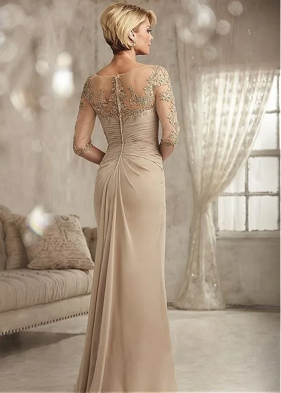 Шампанское Кружева Мать невесты платья Элегантный шифон Русалка жен...