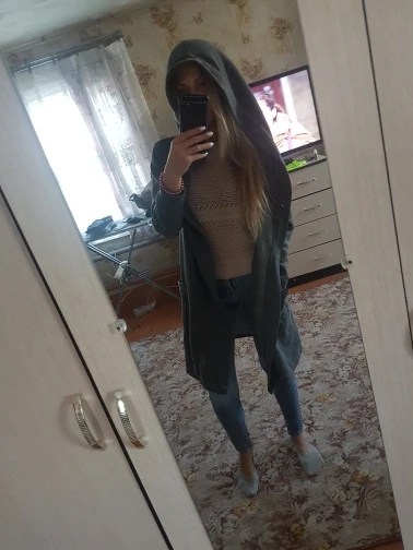 Получила кардиган за 10 дней.Быстро.Качество хорошее,швы ровные,ткань не плотная,только отрезала внизу валаны,сделала прямые.Заказала на размер больше своего.Так как боялась что будет маленький размер.Взяла XL.Рукава тоже по длинне чуть подрезала.На рост 170 оо в рукавах по длинне и ширине чуть большеват,пришлось ушивать.А так я очень довольна.Спасибо продавцу.