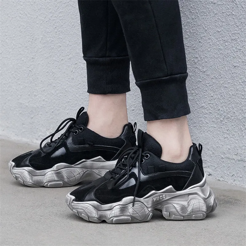 Женские кроссовки из натуральной кожи FEDONAS, черные кроссовки на шнуровке, на весну-лето