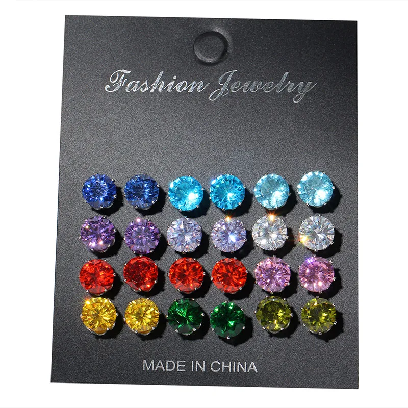 Серьги-гвоздики мужские с кристаллами, 12 парупак. AAA CZ, Комплект...