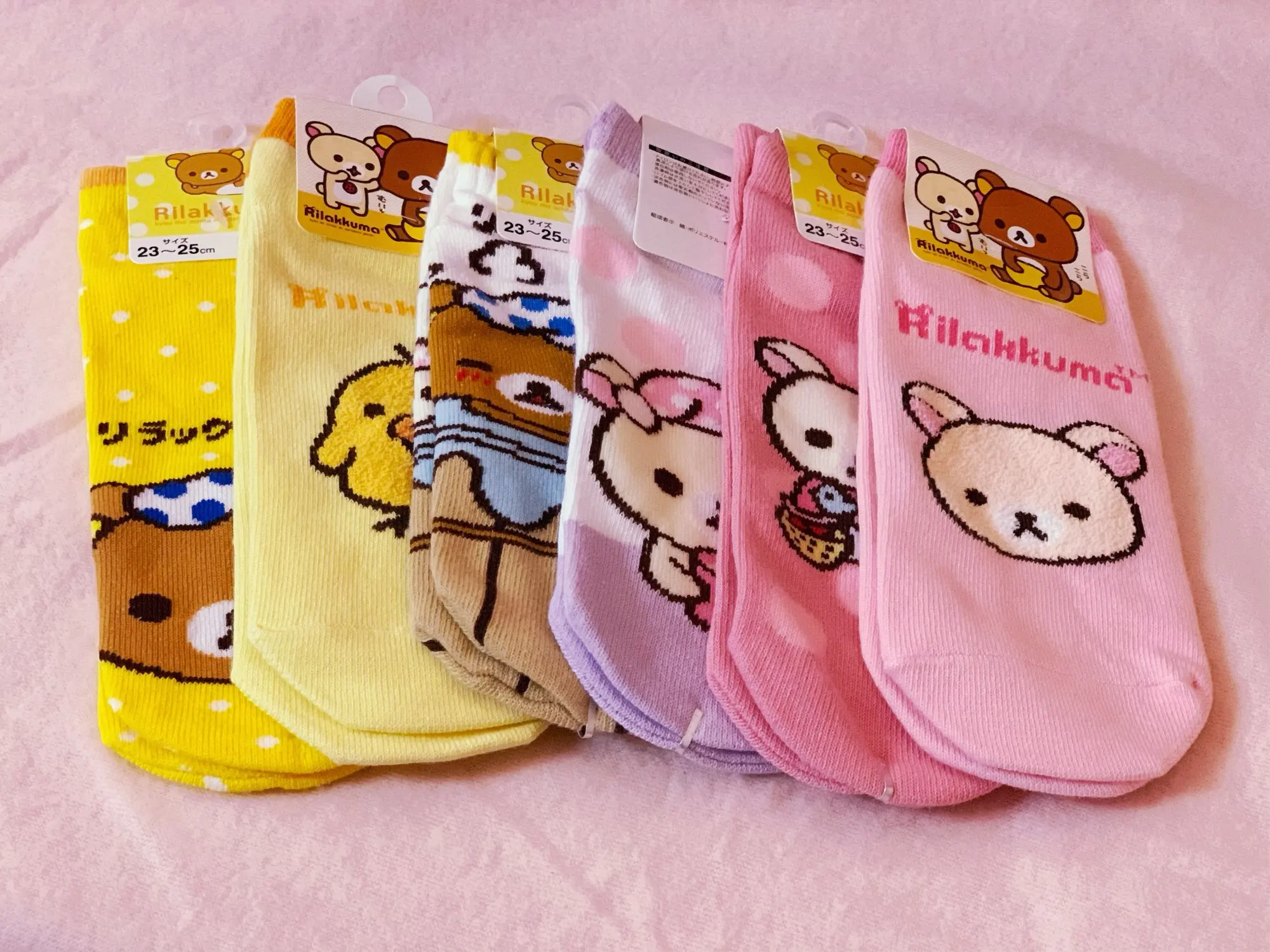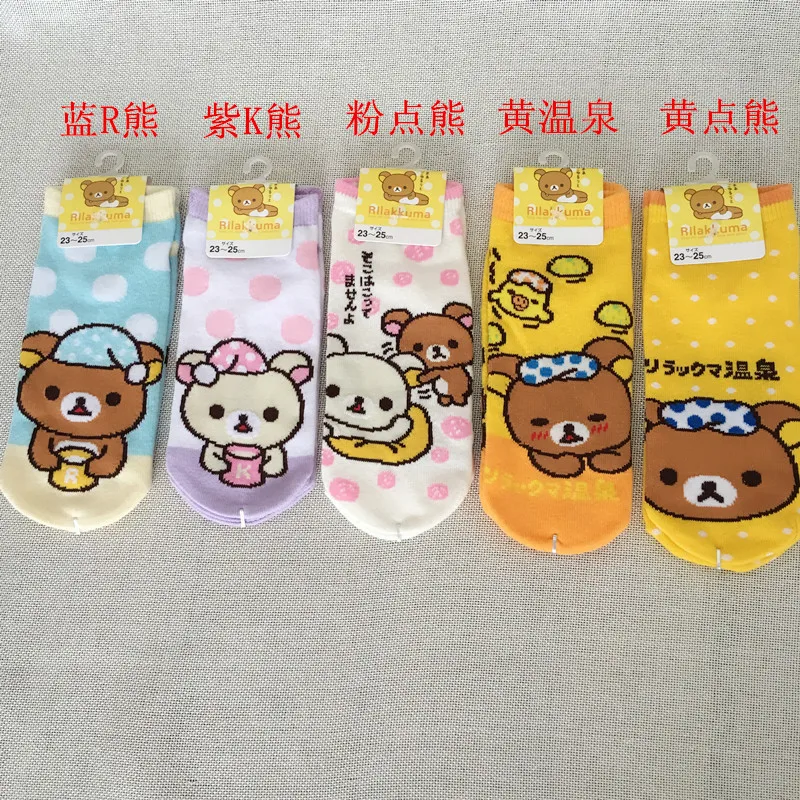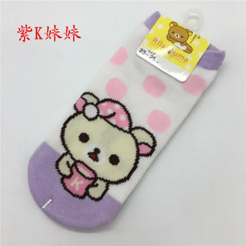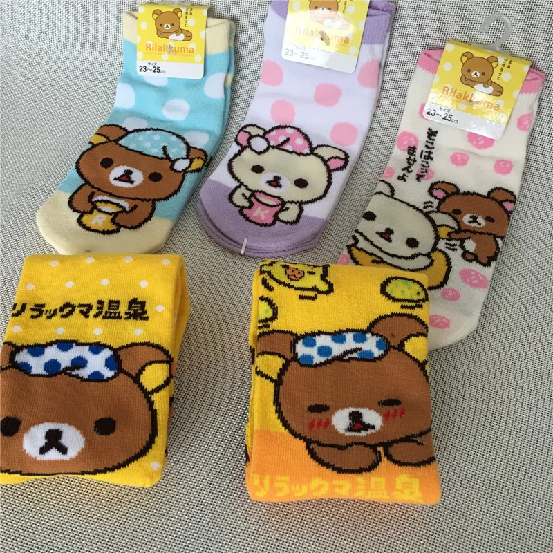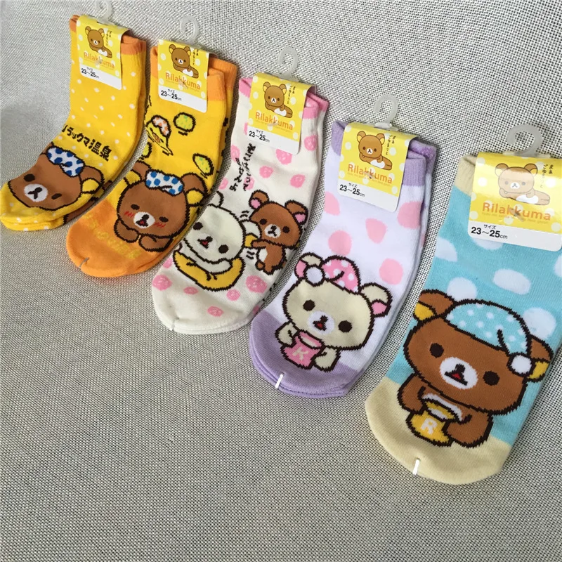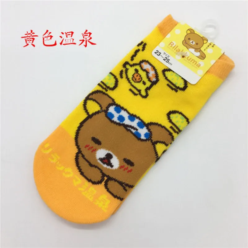 Женские носки Rilakkuma, Короткие хлопковые носки в полоску с принтом оранжевого медведя, телесного цвета, смешные удобные носки с мультяшными животными