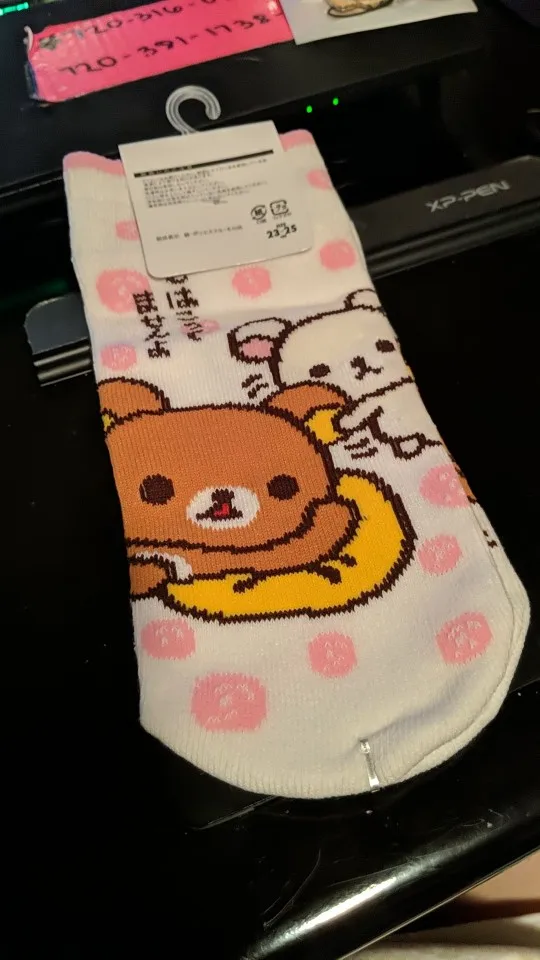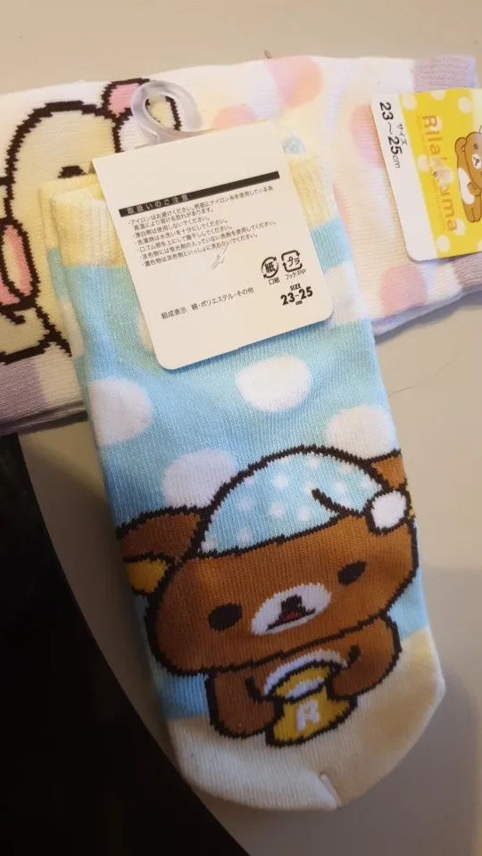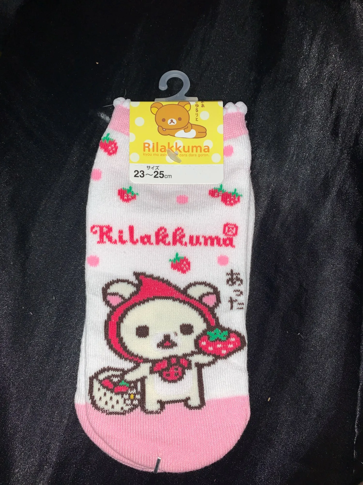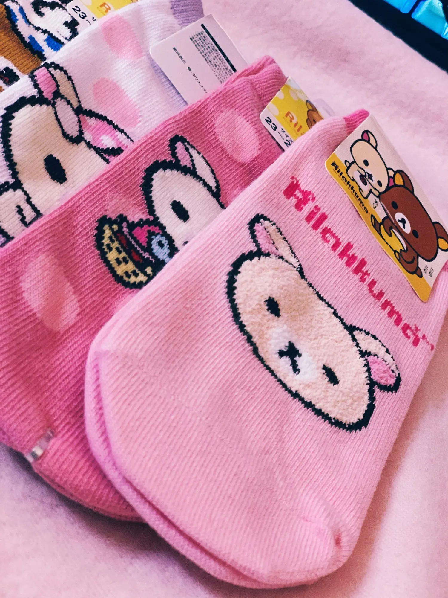 Женские носки Rilakkuma, Короткие хлопковые носки в полоску с принтом оранжевого медведя, телесного цвета, смешные удобные носки с мультяшными животными