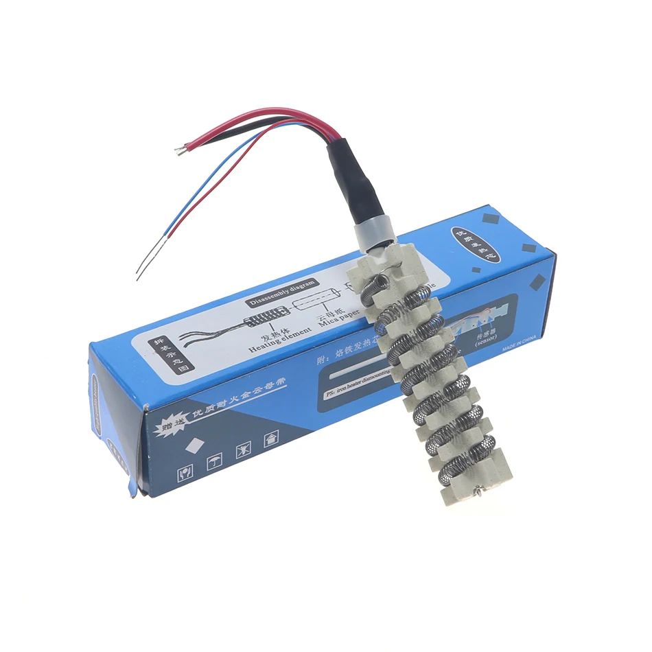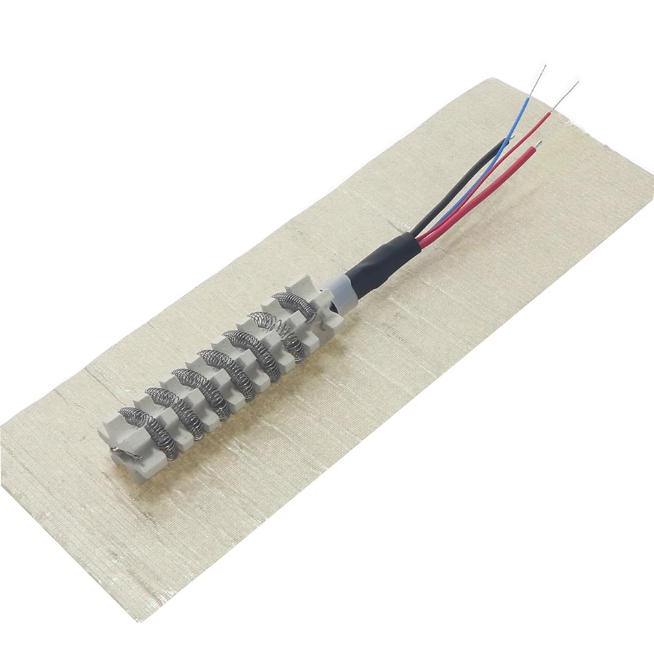 Сопротивление спирали 74.7 Ом, что даёт нагрузку 650 Вт примерно на напряжении 220 В. Просматривается под термоусадкой термопредохранитель. Основа керамическая, обмотана слюдой. Диаметр нагревателя 23,5 -24 мм, длина около 70 мм. Провода присоединяются к спирали обжимками, при включении немного потрескивают. В целом по изготовлению замечаний нет.