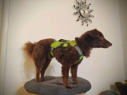 Я заказал размер XL, думая, что L будет слишком маленьким для моей собаки (37 кг), но он был довольно длинным. Я очень доволен обручами, на ощупь он кажется довольно качественным, прочным и стойким. Осталось доказать это вовремя, но за свою цену я считаю, что это отличное качество.