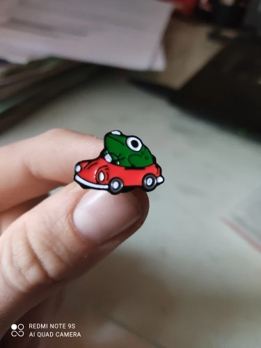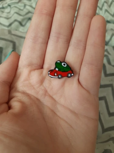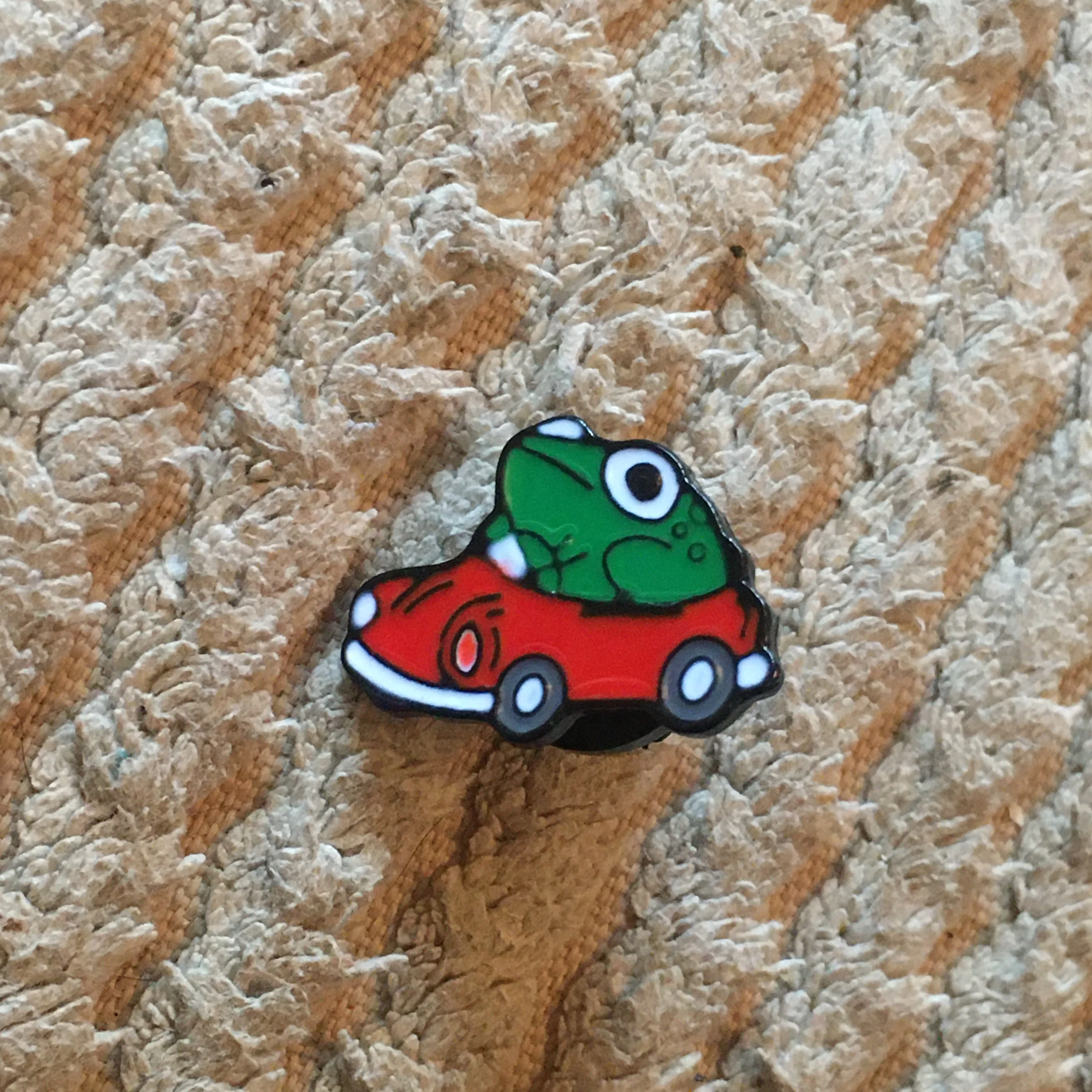 Брошь эмалированная в виде зеленой лягушки, автомобиля