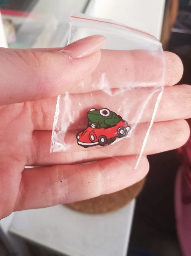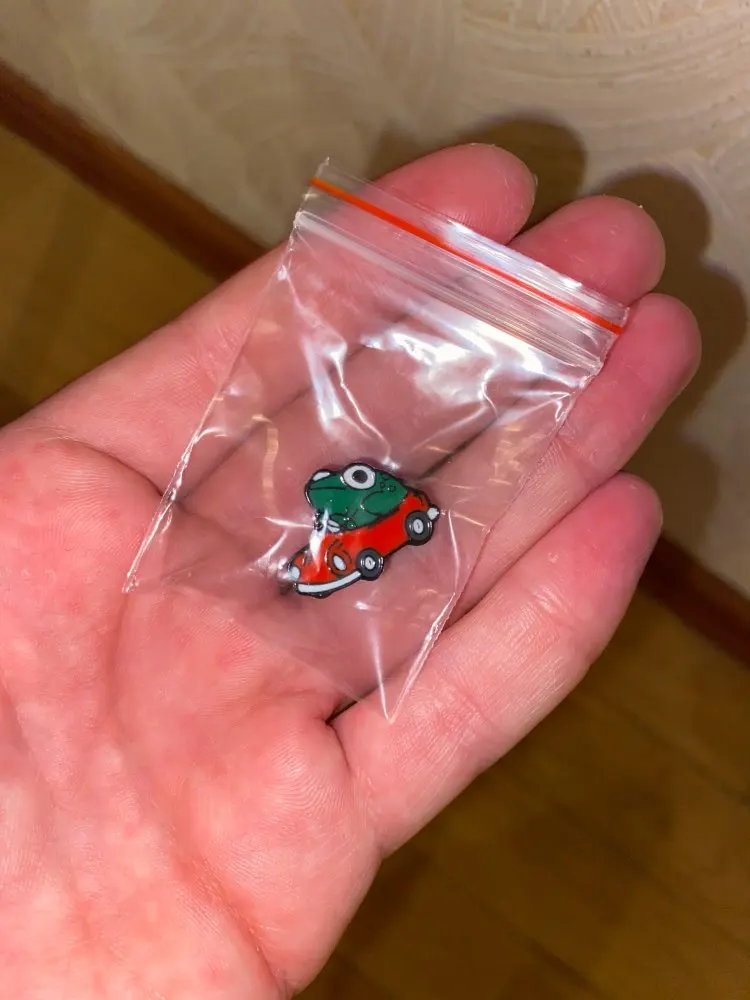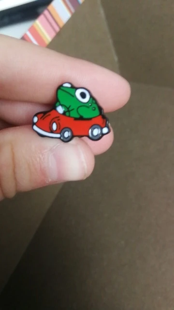 Это очень классно, я прям в восторге. Такой прикольный значок, и стоит очень мало (у нас любой значок в магазине рублей 150 минимум). Шло довольно долго, заказывала в августе, пришло только сегодня, но этого того стоило. Значок качественный и, так скажем, замочек, крепкий, думаю, сорвать будет трудно, а слететь точно не должен. Цвет лягушки немного темнее, чем на предъявленной картинке, но это не страшно, да и скорее всего это зависит от света.