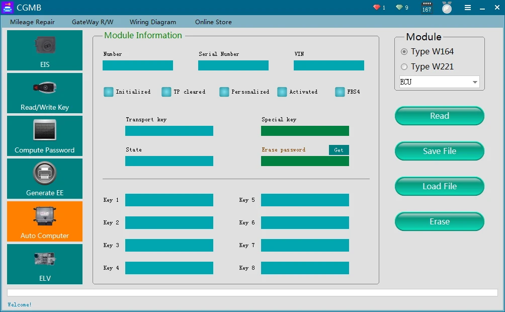 1). Может считывать данные EIS через OBD, нет необходимости различать модель EIS/EZS.2). Может отображать статус ключа и напрямую отключать положение ключа.3). Может отображать номер EIS, может отличить модель Benz4). Может отображать статус EIS.5). Автоматическое определение модели EIS.6). Автоматическое определение протокола CANГенерируйте ключевые данные: