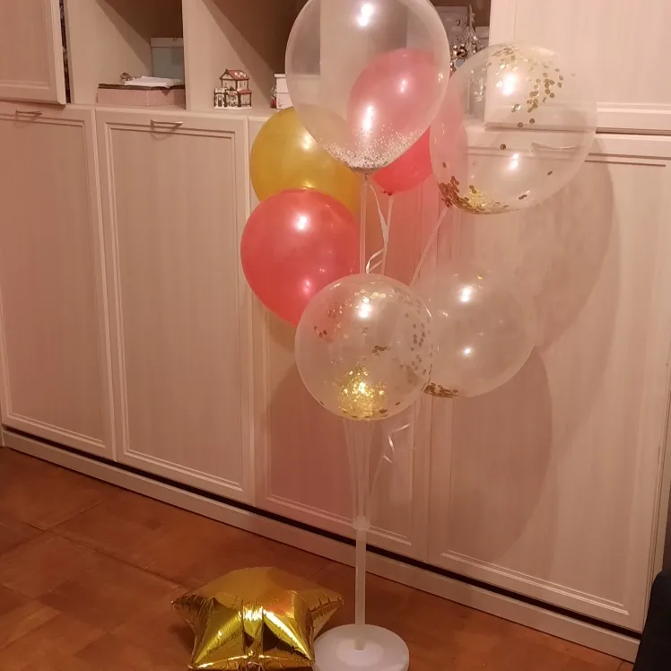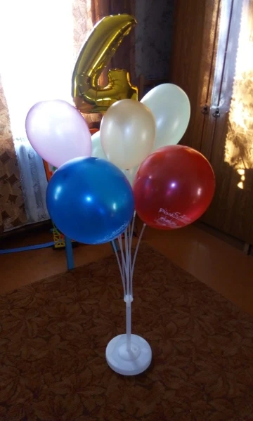 очень хорошая подставка для шаров, хотя есть один минус, крепятся к ней только обычные шары, все остальные не держатся и перегружают своим весом, будет постоянно падать, но товар и продавца рекомендую
