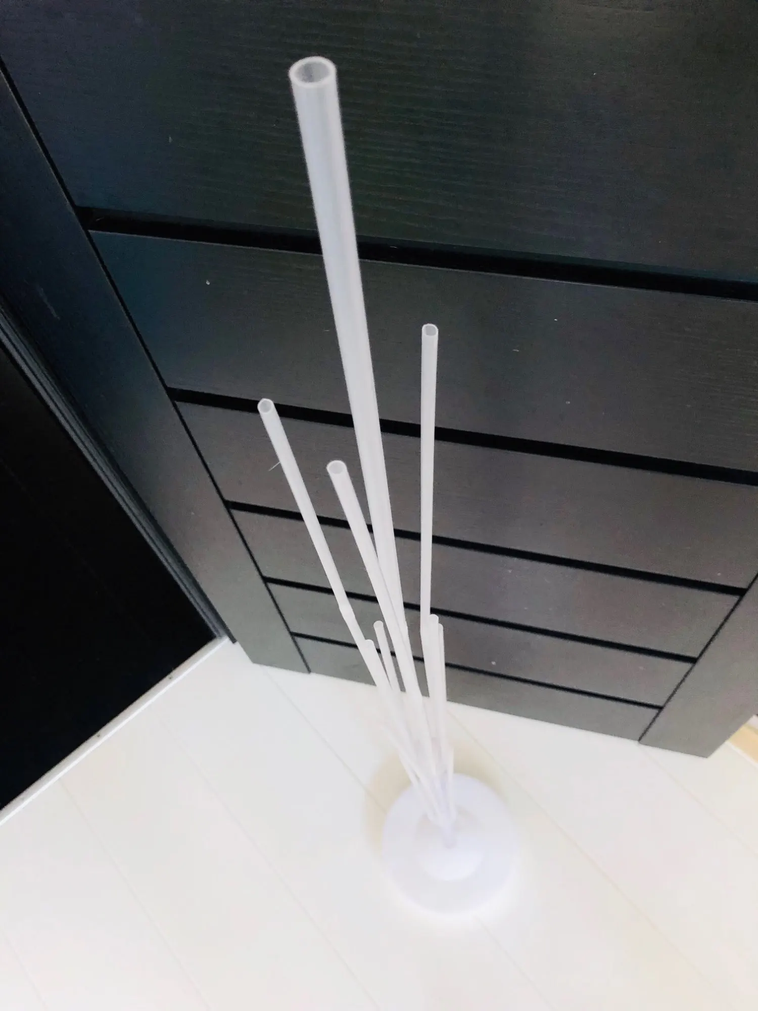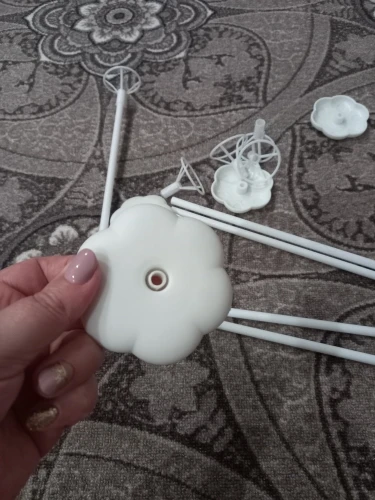 не совсем поняли как собирается. есть три коротких трубочки, остальные длиннее и одинаковые. Немного видны крепеж следующего яруса. Но в целом неплохо, собирается легко. Шарики держатся слабо, если переносить, то их крепежи слетают с палочек