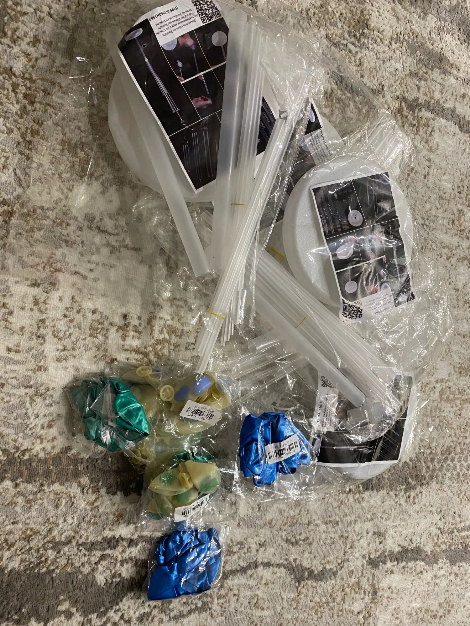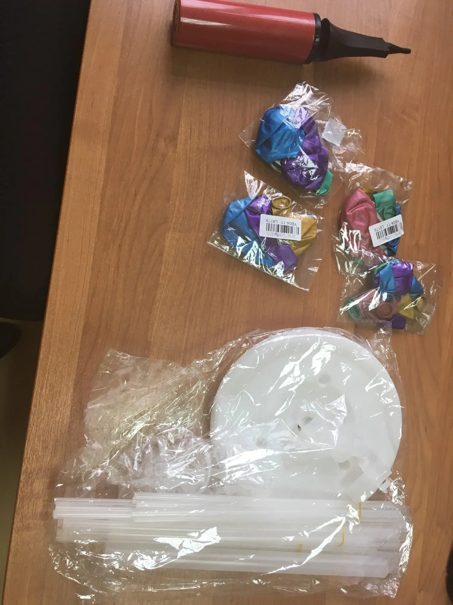 Пришло все целое, но не положили переходник, куда вставляются стойки для шаров, получилась бесполезная штука, очень расстроили, потому что брали на день рождения. Смотрела фотографии, у всех есть этот переходник