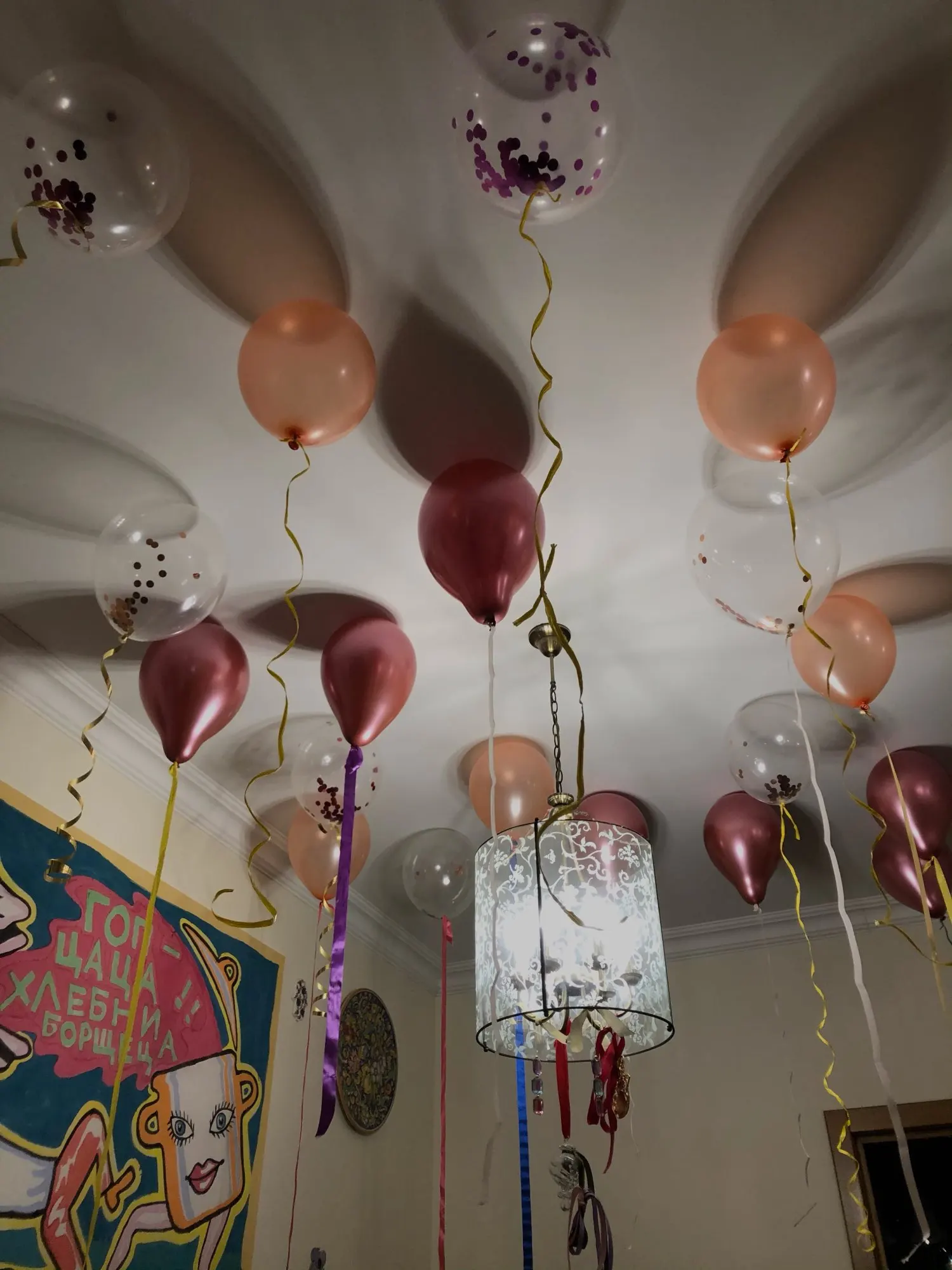 Продавец отправил заказ где то день на 4ый, дошлел до Москвы быстро - за 6 дней. Шарики хорошие, надуваются легко, достаточно крепкие, большие получаются. С конфетти вообще бомба! Купила 3 разных набора - хватило на 2 комнаты, смотрелось супер! Они без гелия, надувала собственными легкими ;), купила двусторонние липкие капли (тоже на пли взяла( и просто приклеила к потолку - лайфхак))