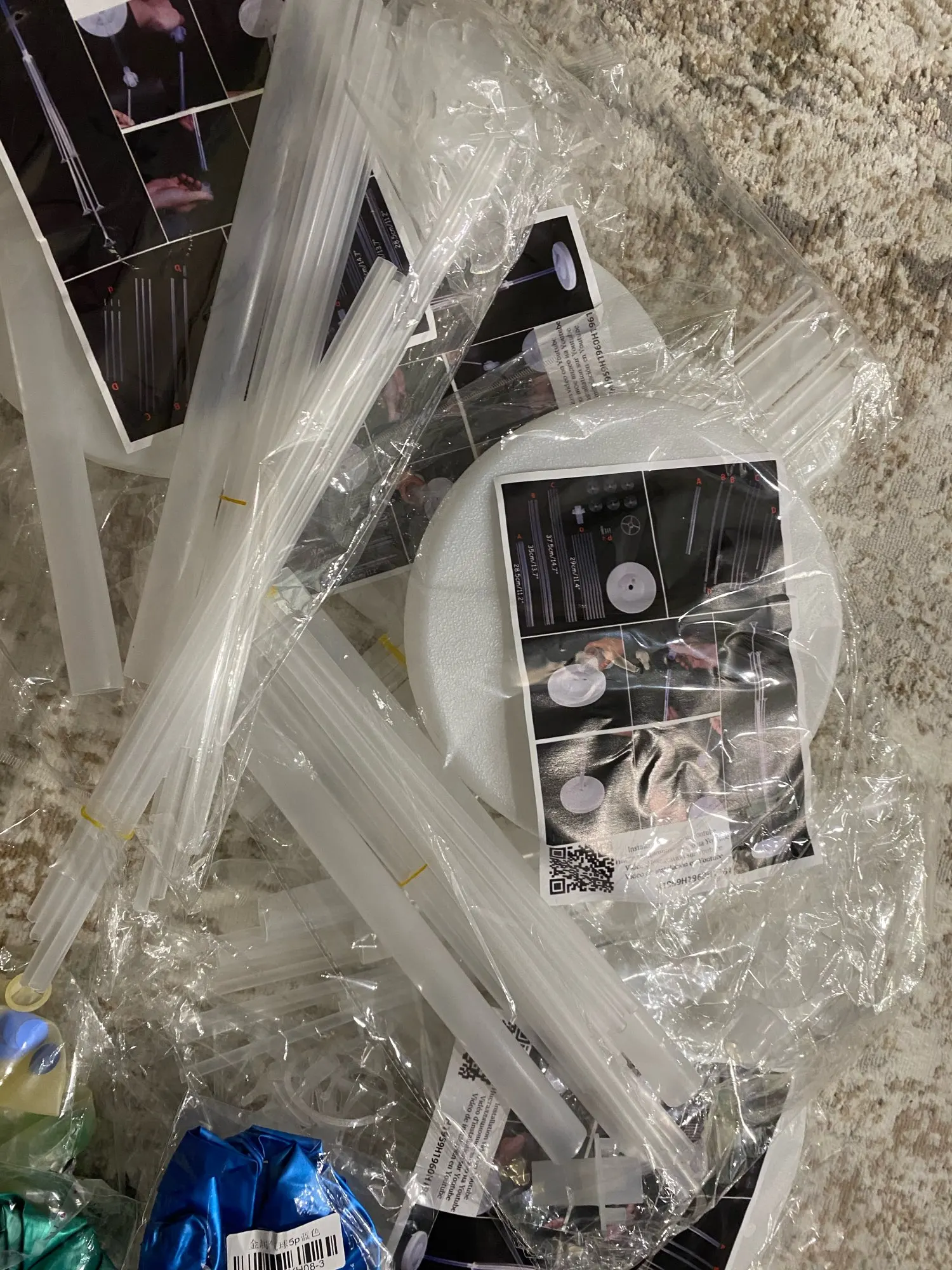 Я ооочень рада, что всё успело прийти к дню рождения, доставлено за 16 дней до Белгородской обл. Как собрать разобраться не сложно)) все детали на месте, высоту не измеряла, но думаю 1.3 м. будет. 13 держателей шариков. Как все это доехало целым я не знаю, упаковано просто в пакет из слюды, никакой пупырки, подставка слегка примялась, хотя могла и треснуть, светую продавцу лучше упаковывать. А вобще товаром я очень довольна и сроками доставки.