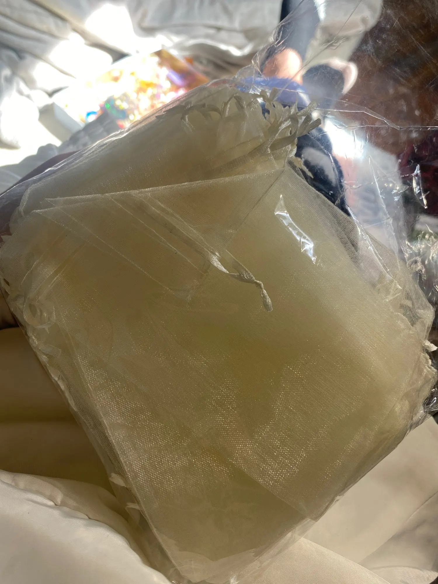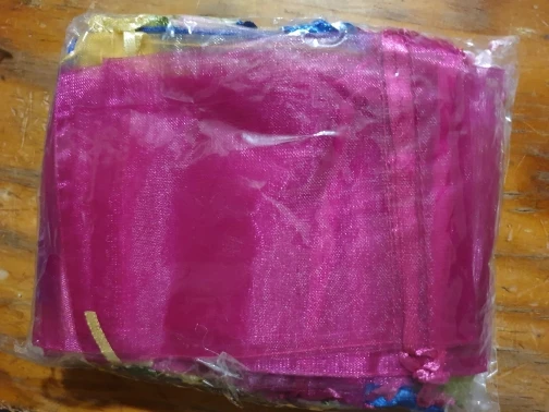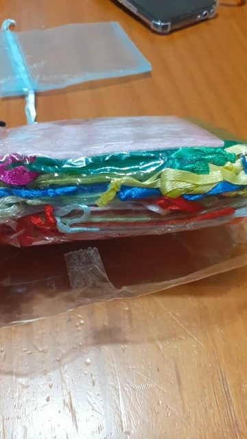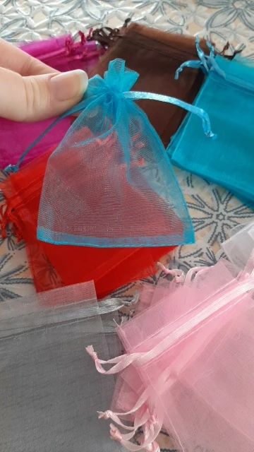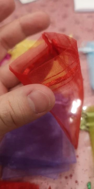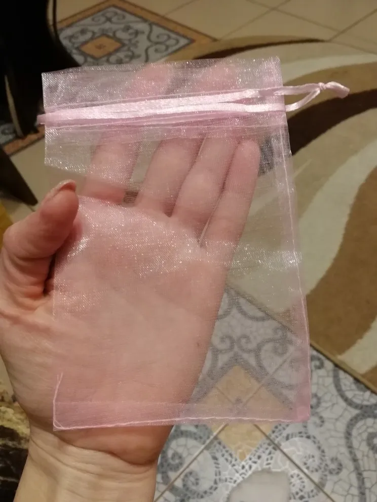 Очень качественные мешочки, цвета соответствуют оригиналу, швы выполнены хорошо, ничего не торчит, нитки все на месте. Шнуровка тоже хорошая, размеры подходящие, ткань - органза мягкая, все нравится очень!