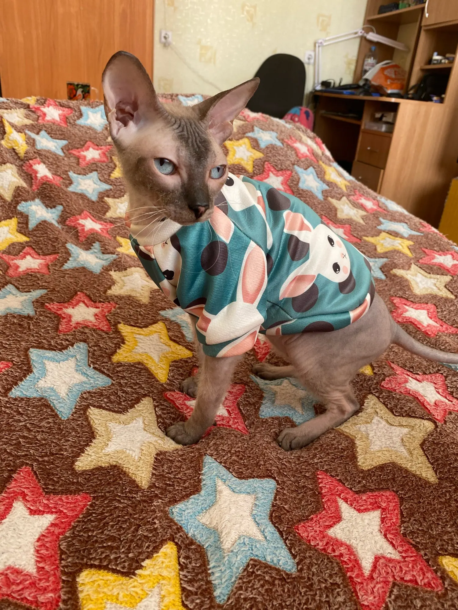 Брала два разных размера XS и S ( с кроликом) т.к она у меня еще котенок и растет. Брала с небольшим запасом. Она немного подросла пока ехал заказ но вроде бы подошел. Размер больше примерю когда будет постарше :) на ощупь довольно приятная, но как мне кажется у меня кошка сама по себе тощая и и свитер лежит на ней складками. Кроме этого ей неудобны ( возможно с непривычки рукава ) она часто лапу из него высовывает.