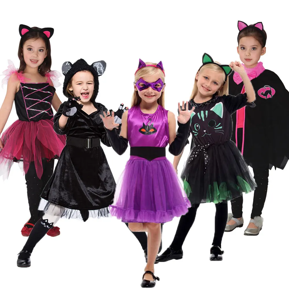 Umorden Милая фиолетовая черная кошка котенок костюм кошки для девочек детский маскарадный Хэллоуин Карнавал вечерние новогодний наряд