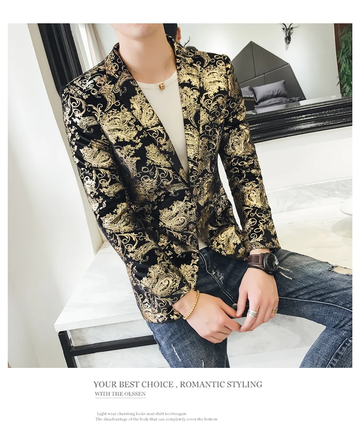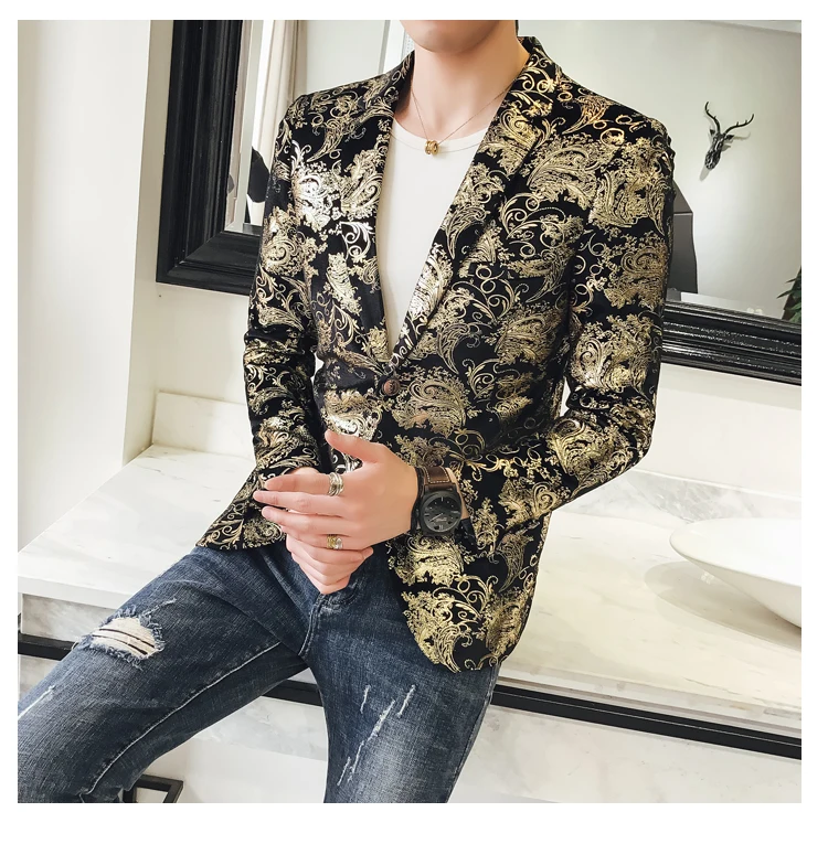 Мужской блейзер с цветочным принтом, облегающий блейзер для повседневной носки, 2019
