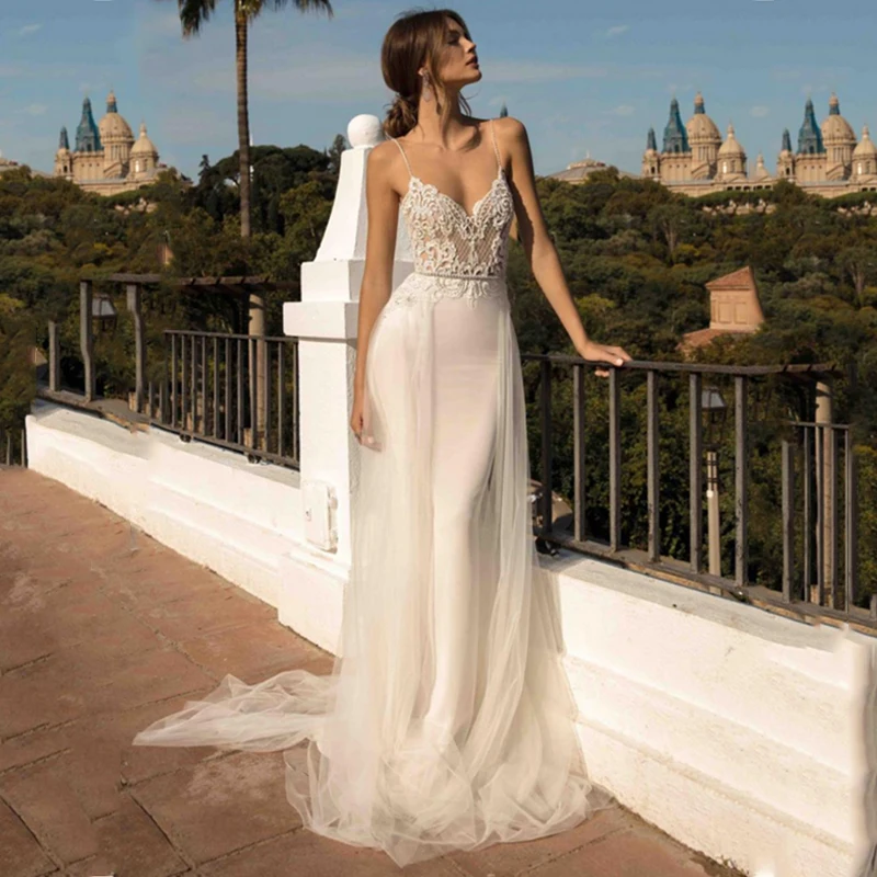 LORIE пляжные свадебные платья на бретельках, женское длинное свадебное платье принцессы с открытой спиной, платье невесты в стиле бохо 2019