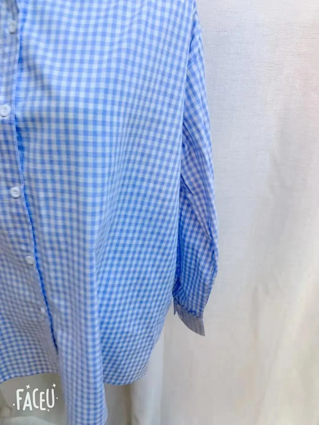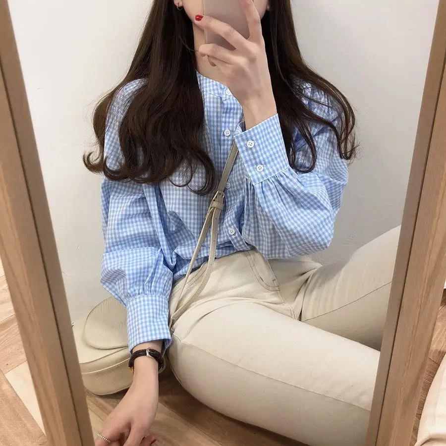 Рубашка женская в клетку с длинным рукавом, повседневная клетчатая блузка, топ, весна S-XL