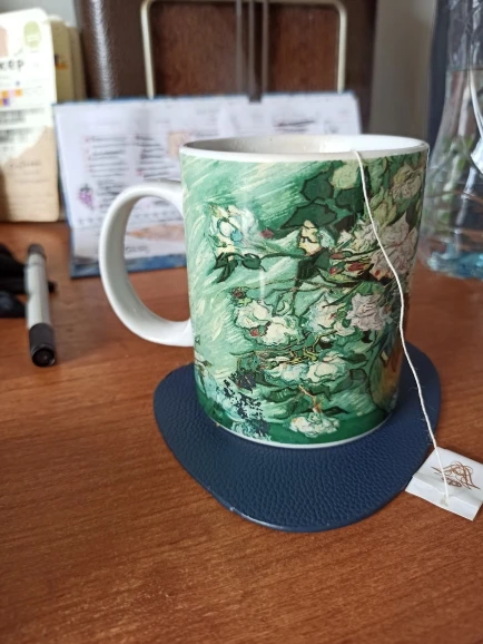 довольно приятная подставка под чашку, для рабочего стола очень удобно, много места не занимает, зато от горячего напитка стол не портится и не пачкается. выиграла за цент и монетки, за что продавцу благодарность. но доставка долгая, уже Али написал, что посылка доставлена, а ее все нет, т.е. 3 месяца доставка, абсолютно не серьезно. и цена, конечно, за подставку завышена, 350р за небольшой, однако, хорошо обработанной кусочек искусственной кожи, ну такое...