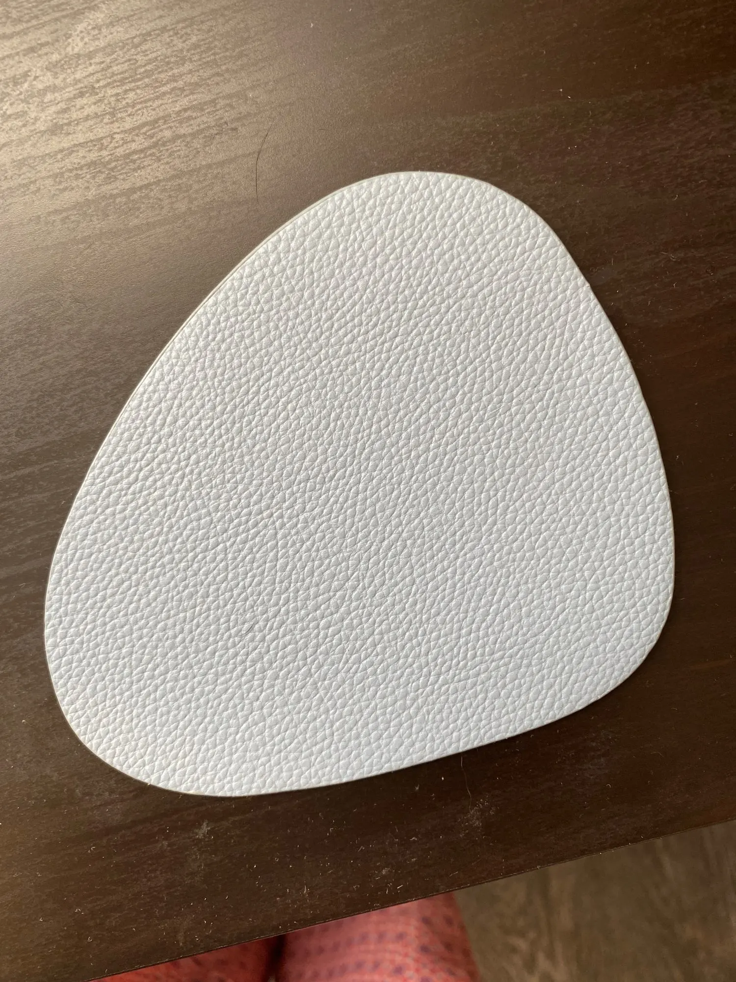 Стильная подставка-коврик для кружки или чашки. Внешне выполнена под кожу. Одна сторона шершавая, с крупным зерном, а другая более ровная, напоминает шлифованную кожу. Материал не очень жесткий, практически без запаха и довольно легко моется. На столе смотрится оригинально и не занимает много места. Идеальное решение для сервировки стола в кафе или ресторане. Доставка месяц, номер отслеживался до самого вручения.