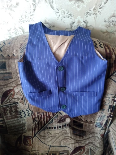 Пришло быстро. Не маломерят. Бабочка настоящая. Рубашка хлопок, приятная. Брюки и жилетка разочаровали. Материал скользкий, искусственный, как толстая подкладочная ткань. Не думаю, что ребенку будет приятно такое носить. Странный выбор пуговиц...