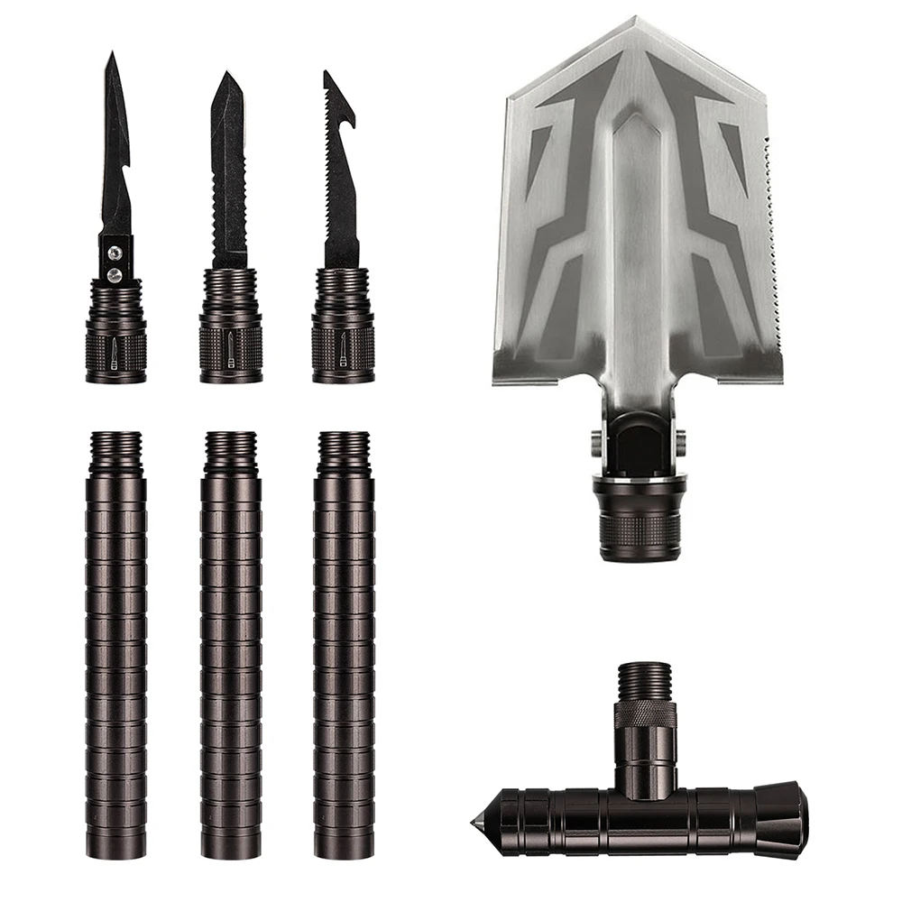 Дошло очень быстро. Качество высокое. использовании быстро сотрутся. Лопата прочная, заточенная. Крепления надёжные. Единственный недостаток данной модели - отсутствует резиновый наконечник для упора в землю в форм-факторе трости или посоха. Металлические навершия при таком