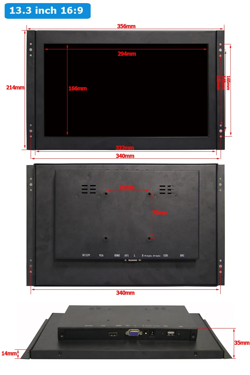 ZHIXIANDA G1316 13,3 дюймовый Full HD сенсорный монитор 1920*1080 металлический чехол ЖК-монитор для лифтаигровой машиныпромышленной машины