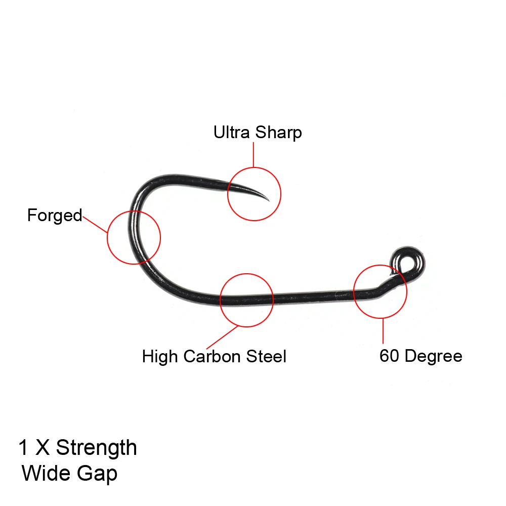 Для завязывания узоров джиг-нимф. Этот крючок в стиле соревнований, безусловно, быстро проскальзывает и надежно держится благодаря сверхострой конструкции из высокоуглеродистой стали и стойкому черно-никелевому покрытию. Джиг Нимфа, черно-никелевая отделка, Барби, угловой глаз 60 градусов, стандартная длина, 1X прочность, широкий зазор, Ультра острый, Высокоуглеродистая сталь, кованая. Размер: 10 12 14 16 20 шт./упак.