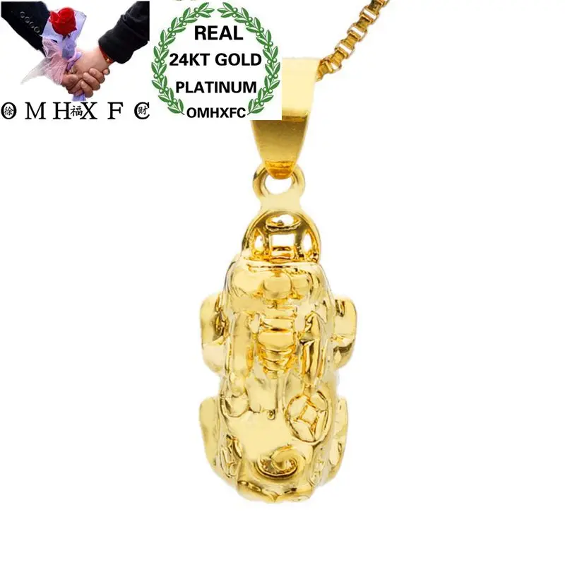 OMHXFC Оптовая Европейская мода для женщин, мужчин, унисекс, подарок на день рождения, свадьбу PIXIU, подвеска из настоящего золота 24 карата, PN159