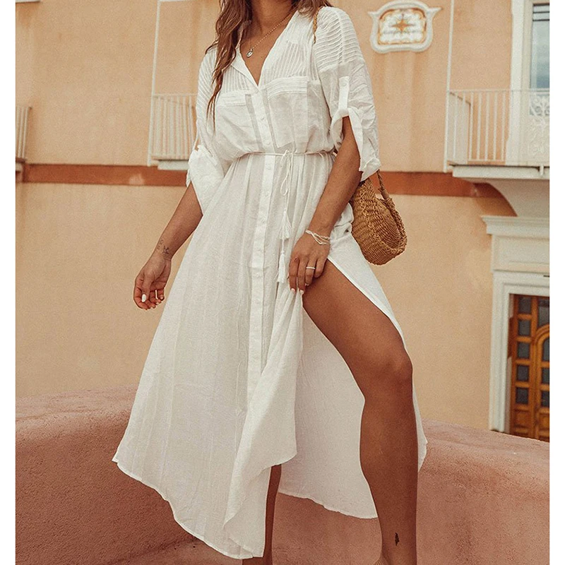 2020 длинное пляжное платье, белое пляжное прикрытие, Ropa de Playa, Пляжное парео-туника, бикини, накидка, кафтан, Пляжное плаванье, накидка