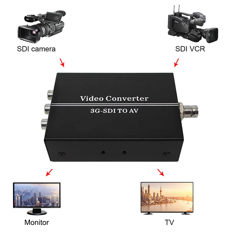 Преобразователь HD/3G-SDI в AV CVBS используется для преобразования сигнала SDI на один канал в AV(CVBS). Разделяйте и конвертируйте звуковые сигналы SDI, а затем вставляйте сигнал toAV, чтобы синхронизировать передачу видео и звука. Пользователь может отслеживать положение камеры в этой местности.