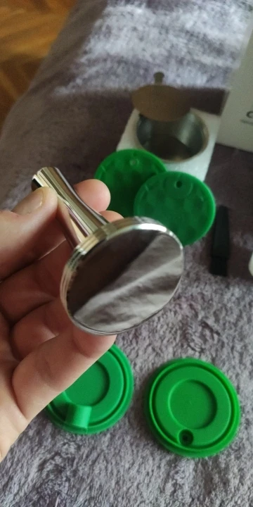 Хорошо прибыл, быстрый и качественный продукт. Также совместим с брендом KRUPS. Хорошо закрыть силиконовый корпус правильно на опоре из нержавеющей стали, иначе он остается приклеенным сверху при открытии. Удар, чтобы взять.