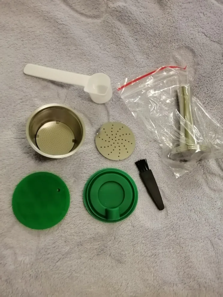 Это отличный продукт, точно такой же, как на картинке. Он работает с моей машиной dolcegusto Oblo и поможет мне наконец-то избавиться от всех пластиковых отходов от обычных капсул. Приготовления вкусного кофе.