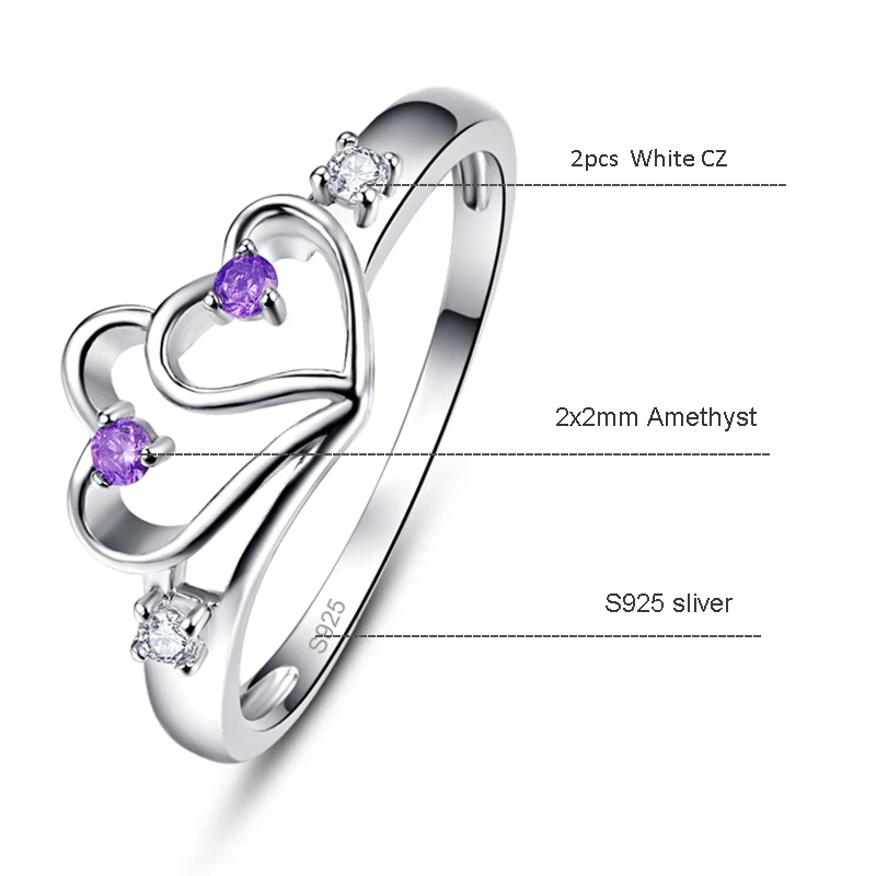 Женское кольцо с аметистом и белым цирконием, серебряное кольцо 925...