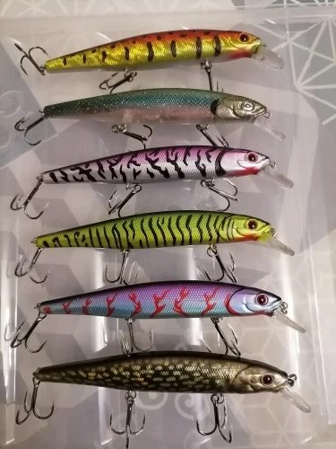 Очень хорошая приманка рекомендуется, хорошо утонуть и двигаться мило, крючки прочнее, чем я ожидал, поэтому нет необходимости менять, другая покупка в магазине, всегда отлично!