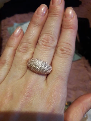 Доставка чуть больше месяца. Для такой цены колечко супер.Фото продавца соответствует.Все камни на месте сверкают переливаются.Брала розовое золото. По дизайну кольцо оч похоже на серебрянную Итальянскую ювелирку покрытуюю розовой гальваникой..на золо не тянет.Визуально кольцо достойное.Но на моих тонких пальцах смотриться громоздковато.....мама себе отжала...ну и для такого колечка маникюр длинный будет агоньРекомендую.В подарок тоже хорошо.